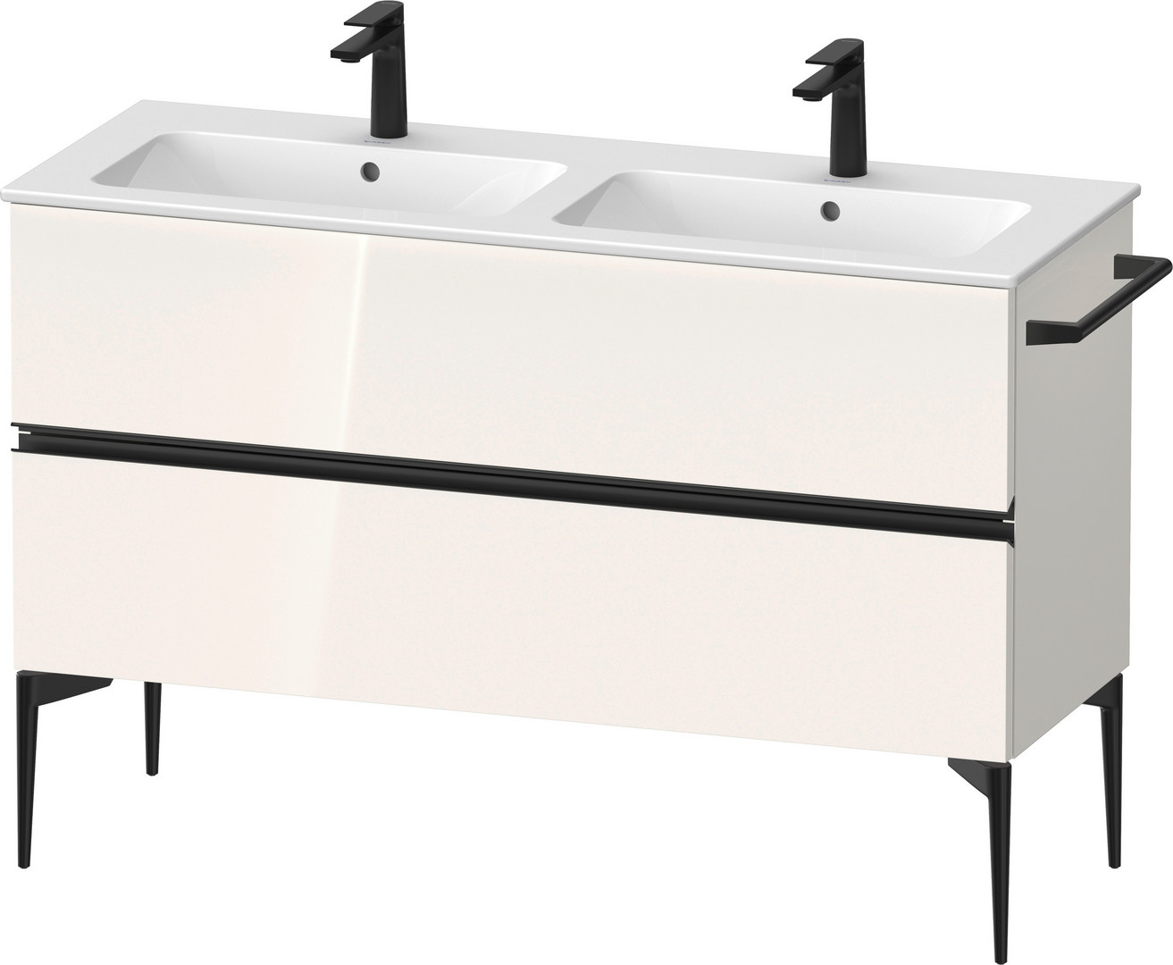 Duravit Waschtisch-Unterschrank bodenstehend Sivida 128 x 59,1 x 47,7 cm, 2 Schubkästen, Weiß Hochglanz, Griff diamantschwarz