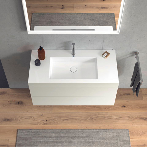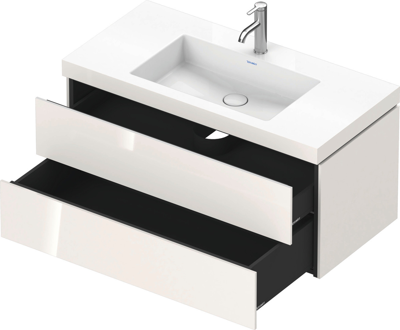 Duravit Waschtisch-Unterschrank c-bonded L-Cube 100 x 48 cm, 1 Hahnloch, weiß hochglanz, 2 Schubkästen, wandhängend