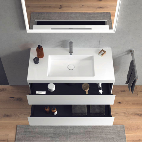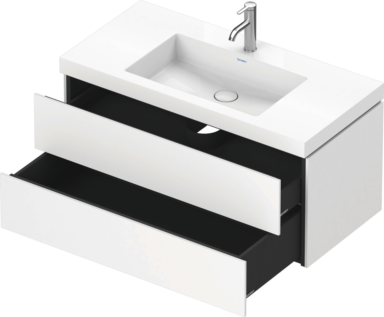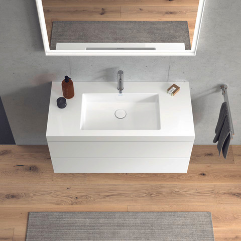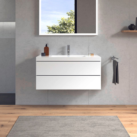 Duravit Waschtisch-Unterschrank c-bonded L-Cube 100 x 48 cm, 1 Hahnloch, weiß matt, 2 Schubkästen, wandhängend