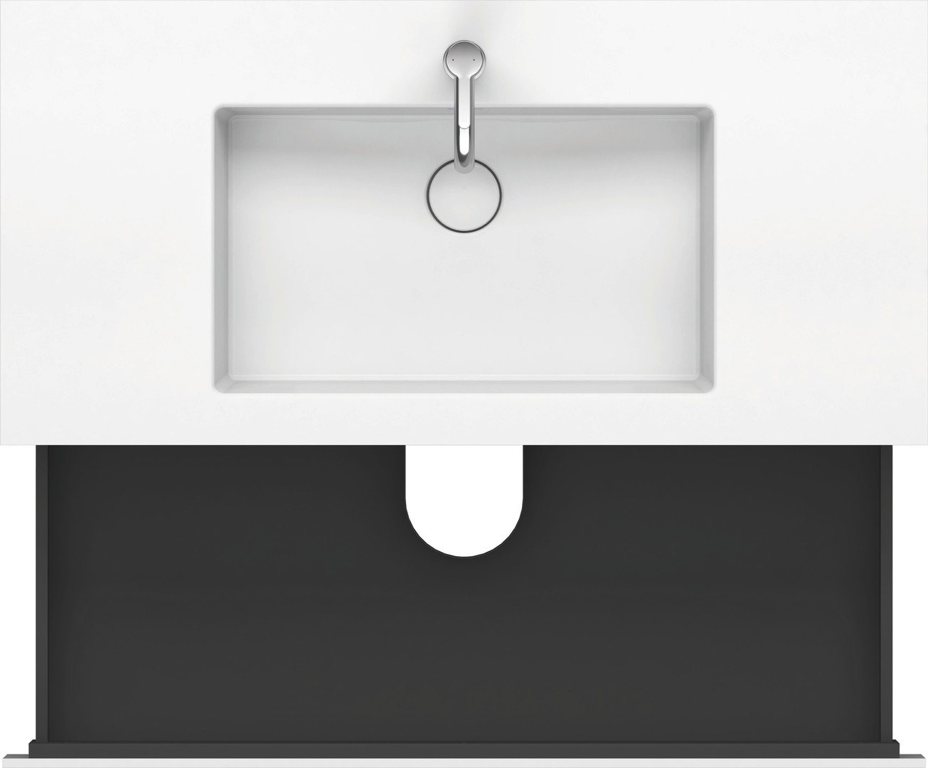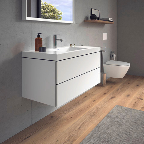 Höhe 50 cm, oberer Schubkasten mit Siphonausschnitt und Schürze, mit Möbelwaschtisch Vero Air, ohne Überlauf, mit Hahnlochbank, mit Schaftventil mit keramischer Ventilabdeckhaube, mit Raumsparsiphon