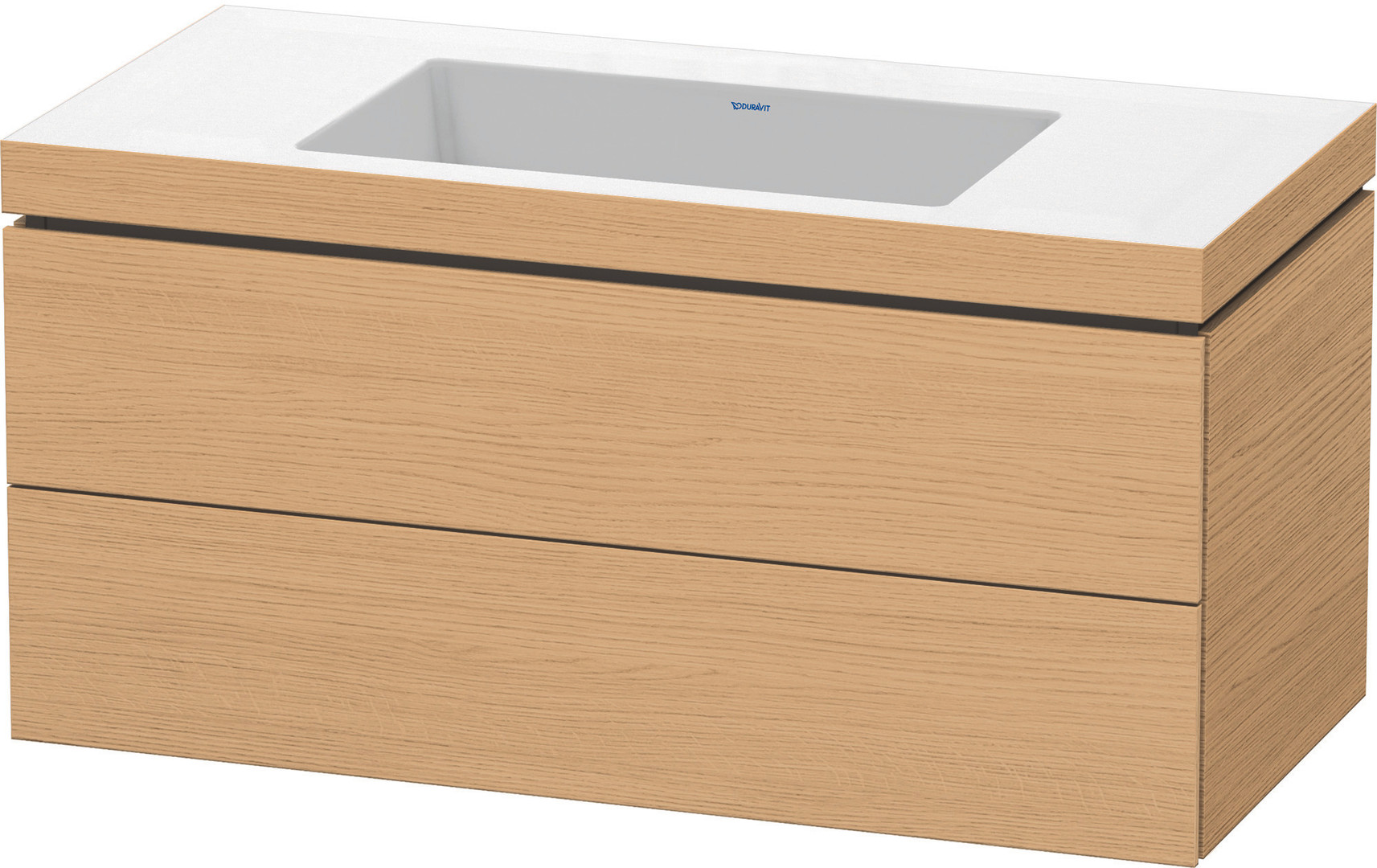 Duravit Waschtisch-Unterschrank c-bonded L-Cube 100 x 48 cm, ohne Hahnloch, Eiche natur, 2 Schubkästen, wandhängend