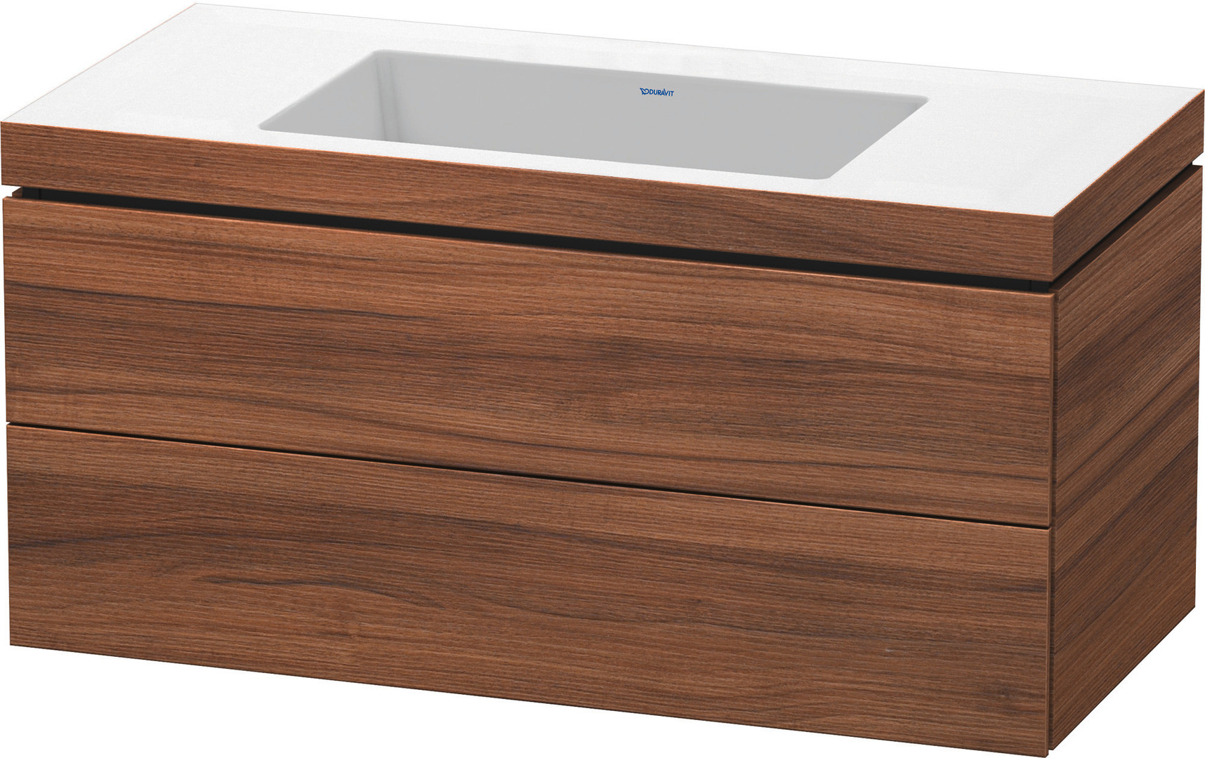 Duravit Waschtisch-Unterschrank c-bonded L-Cube 100 x 48 cm, ohne Hahnloch, nussbaum natur, 2 Schubkästen, wandhängend