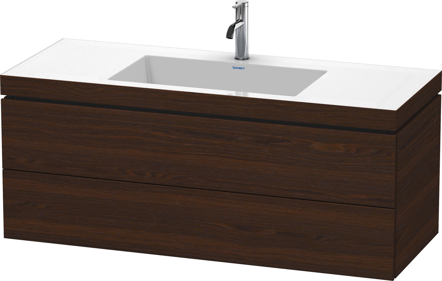 Duravit Waschtisch-Unterschrank c-bonded L-Cube 120 x 48 cm, 1 Hahnloch, nussbaum gebürstet, 2 Schubkästen, wandhängend