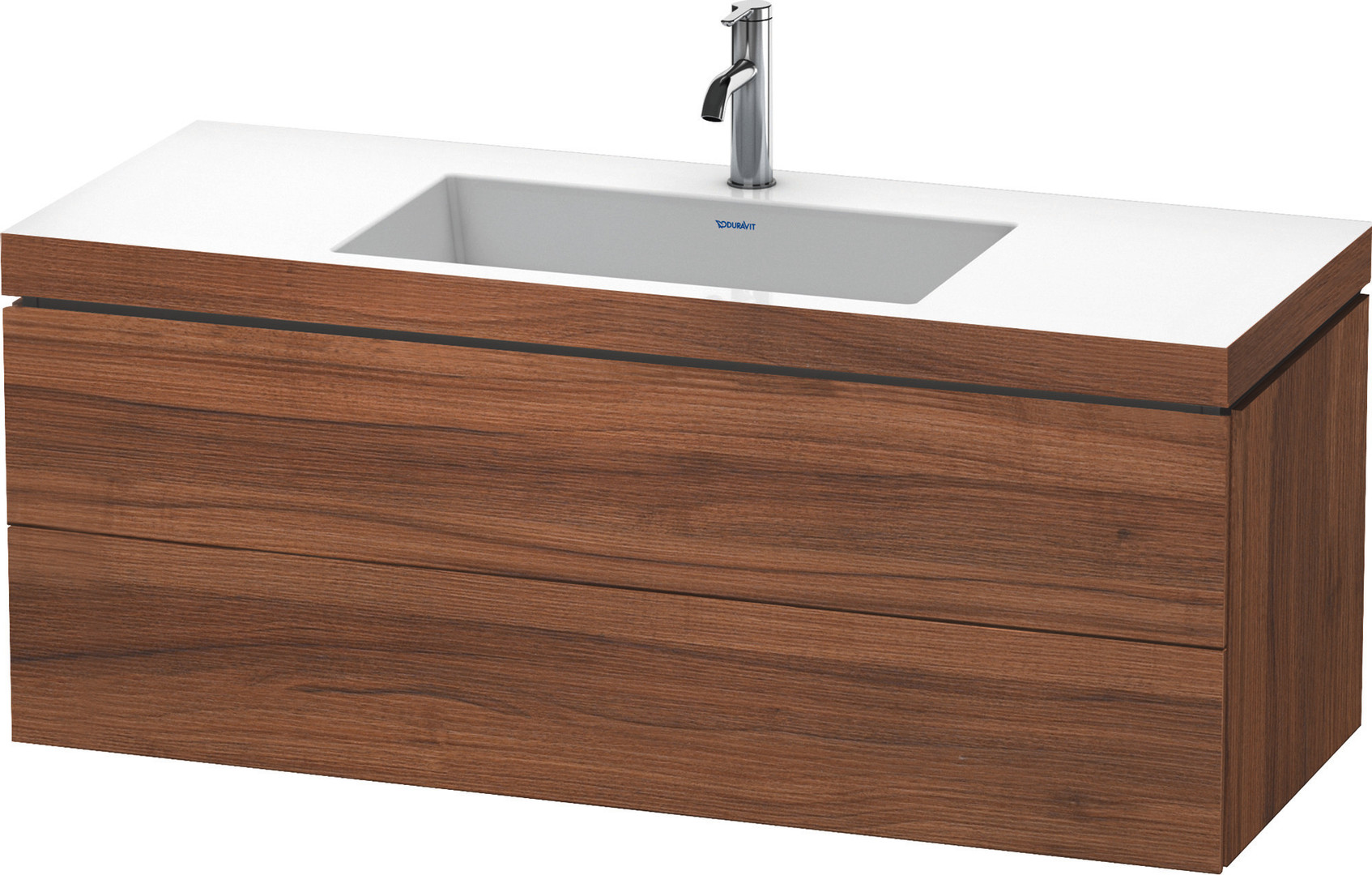 Duravit Waschtisch-Unterschrank c-bonded L-Cube 120 x 48 cm, 1 Hahnloch, nussbaum natur, 2 Schubkästen, wandhängend
