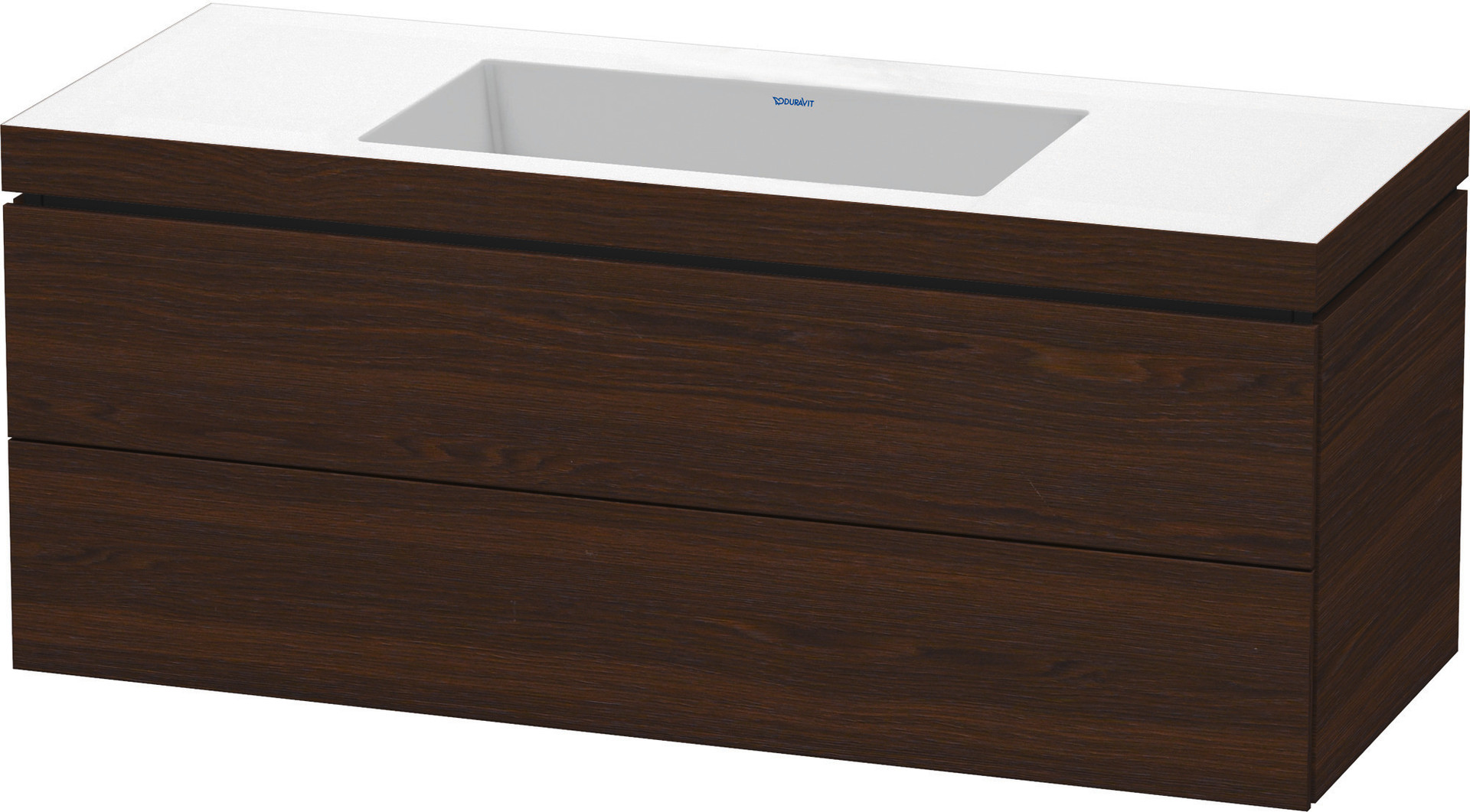 Duravit Waschtisch-Unterschrank c-bonded L-Cube 120 x 48 cm, ohne Hahnloch, nussbaum gebürstet, 2 Schubkästen, wandhängend