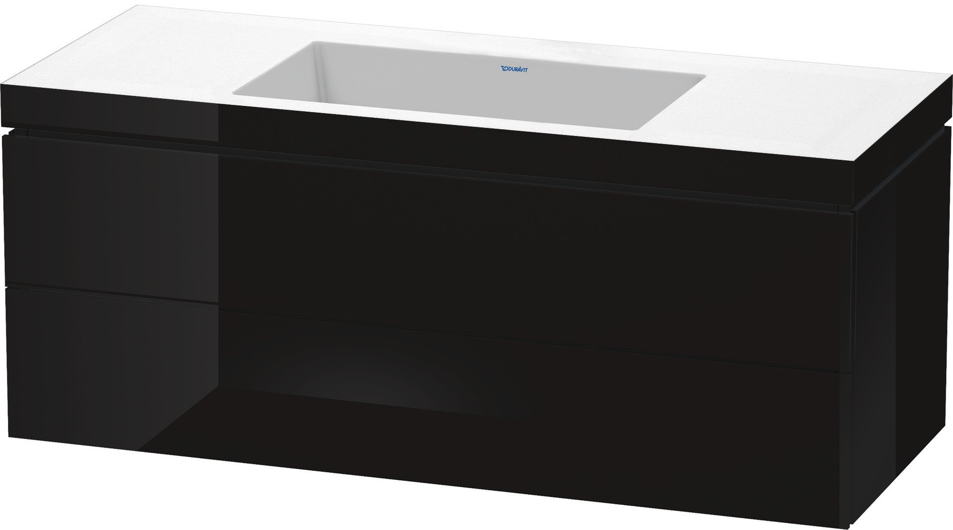 Duravit Waschtisch-Unterschrank c-bonded L-Cube 120 x 48 cm, ohne Hahnloch, schwarz hochglanz, 2 Schubkästen, wandhängend