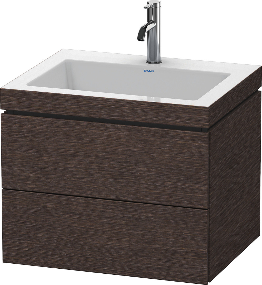 Duravit Waschtisch-Unterschrank c-bonded L-Cube 60 x48 cm, 1 Hahnloch, eiche dunkel gebürstet, 2 Schubkästen, wandhängend