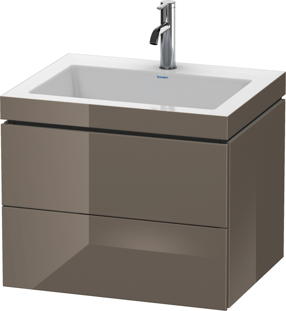 Duravit Waschtisch-Unterschrank c-bonded L-Cube 60 x48 cm, 1 Hahnloch, flannel grey hochglanz, 2 Schubkästen, wandhängend