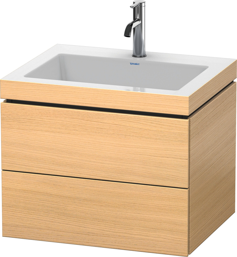 Duravit Waschtisch-Unterschrank c-bonded L-Cube 60 x48 cm, 1 Hahnloch, mediterane eiche, 2 Schubkästen, wandhängend