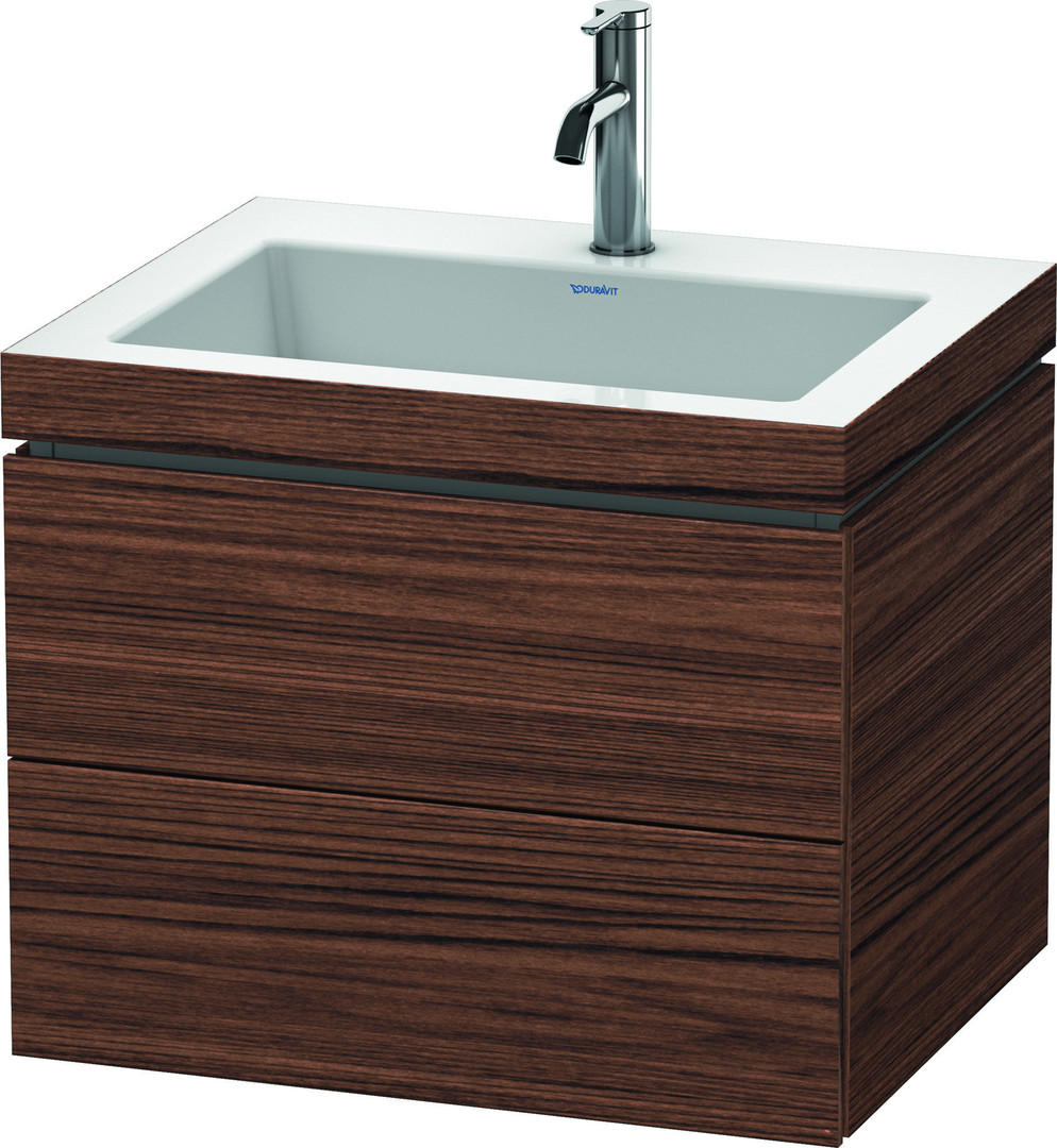 Duravit Waschtisch-Unterschrank c-bonded L-Cube 60 x48 cm, 1 Hahnloch, nussbaum dunkel, 2 Schubkästen, wandhängend