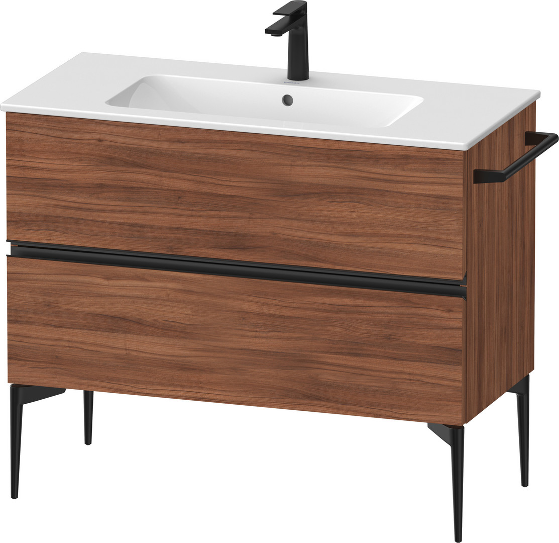 Duravit Waschtisch-Unterschrank wandhängend Sivida 101 x 59,1 x 47,7 cm, 2 Schubkästen, Nussbaum Natur, Griff diamantschwarz