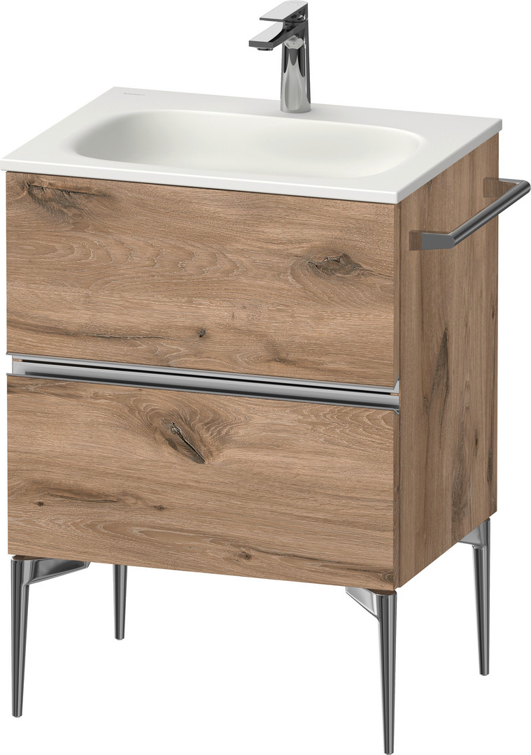 Duravit Waschtisch-Unterschrank wandhängend Sivida 61 x 59,2 x 47,7 cm, 2 Schubkästen, Eiche Marmorie, Griff chrom