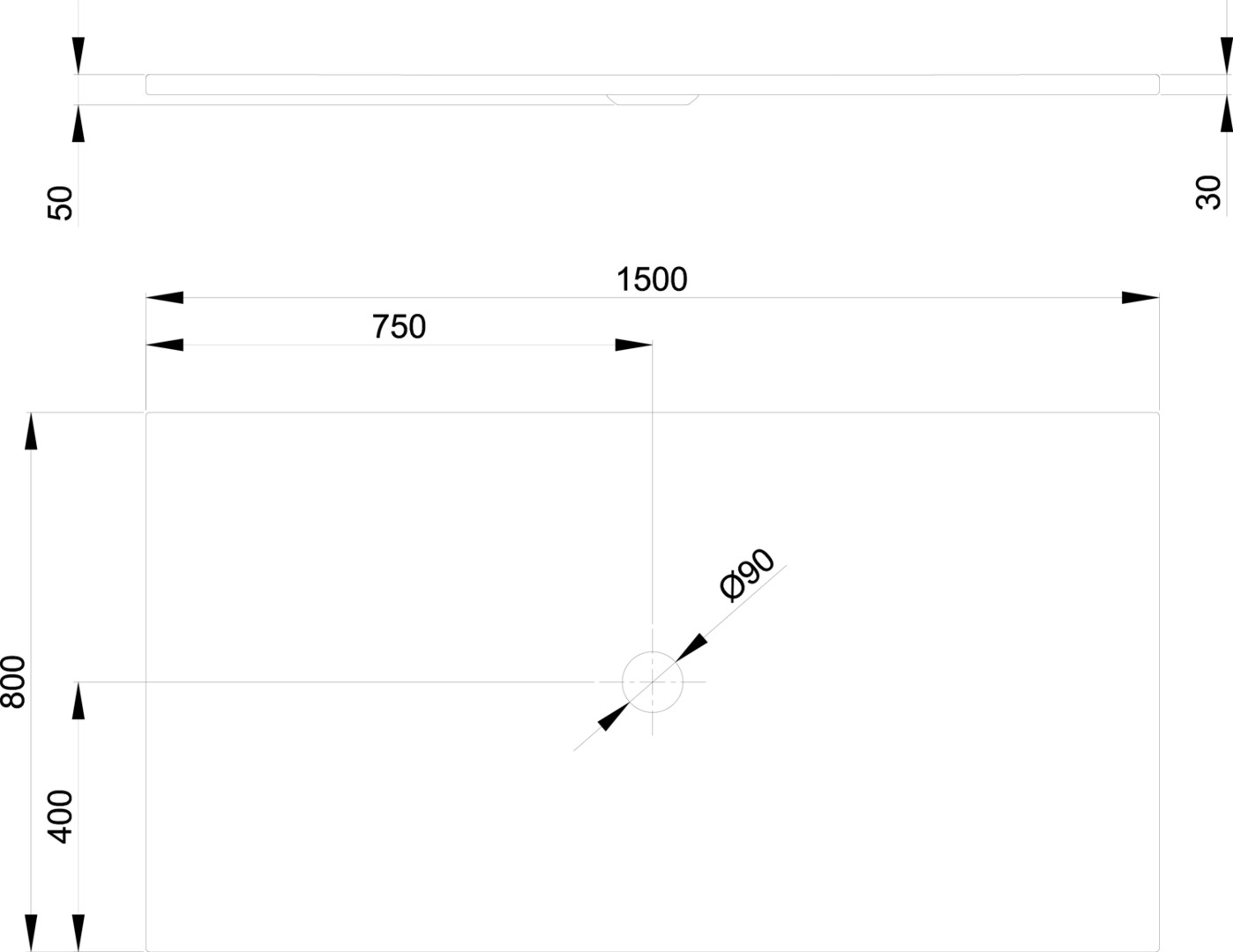 Durchmesser Ablaufloch 90 mm