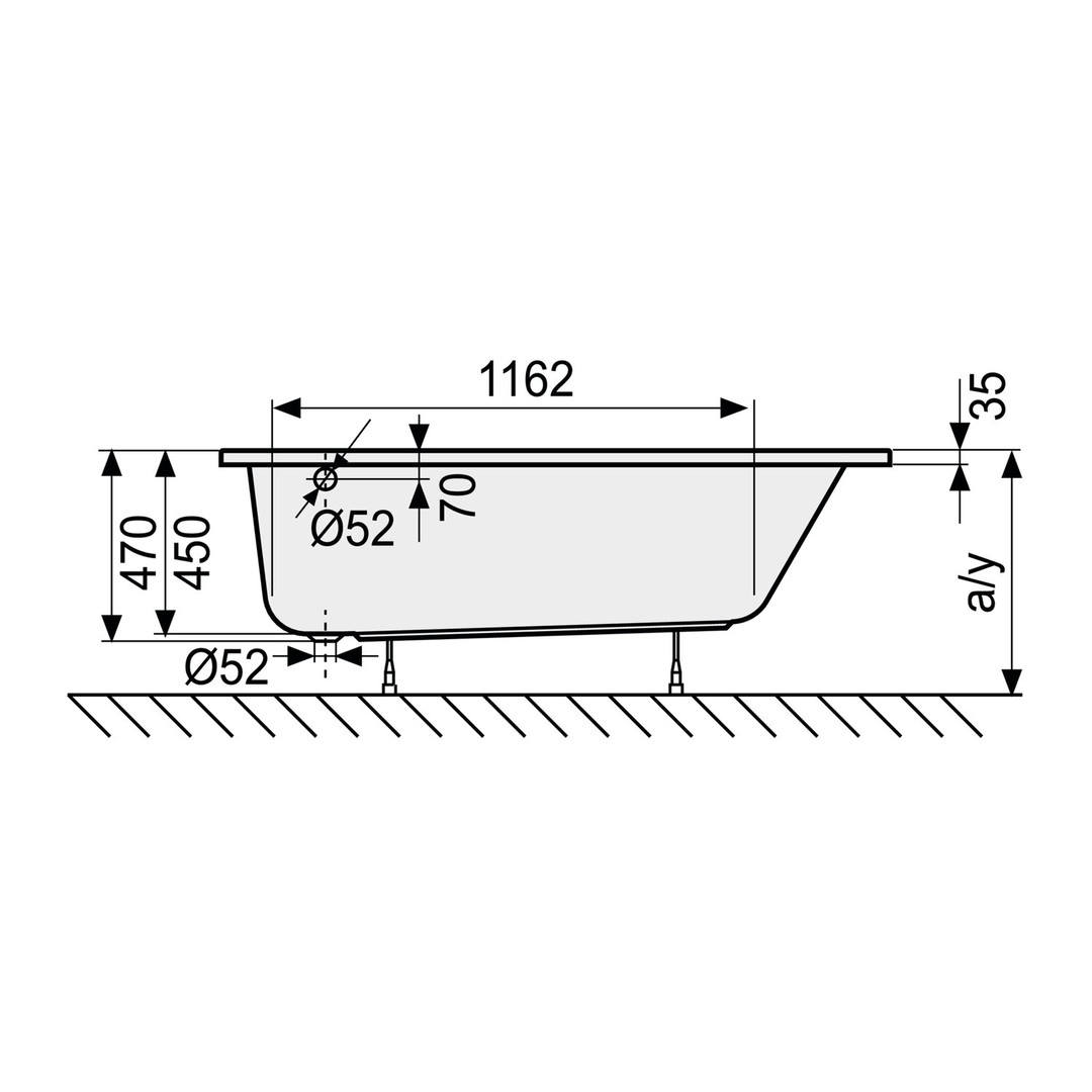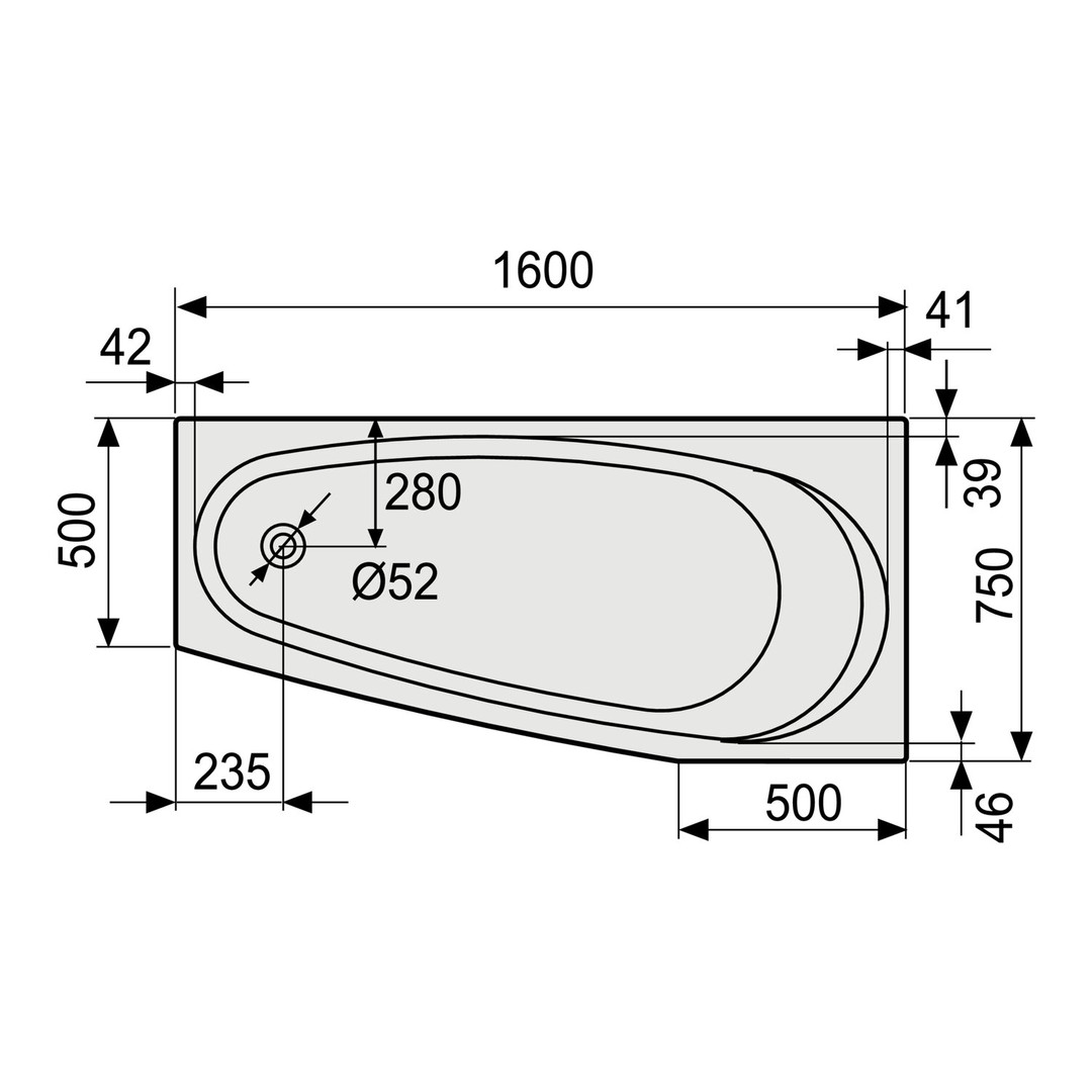 Duscholux Kleinraum-Badewanne PICCOLO 164 160 x 75/50 cm, rechts, weiß