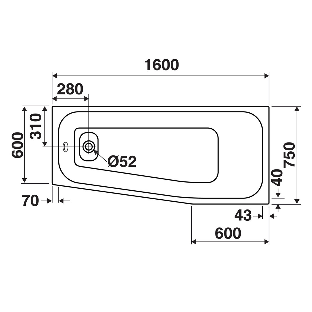 Duscholux Kleinraumwanne PICCOLO 156 160 x 60/75 x 4,3 cm, rechts, weiß