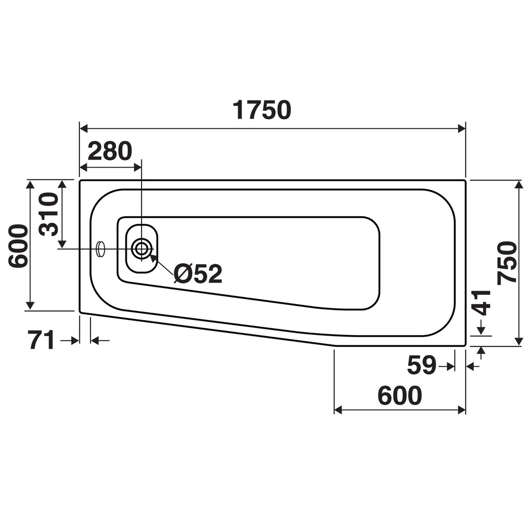 Duscholux Kleinraumwanne PICCOLO 158 175 x 60/75 x 4,3 cm, rechts, weiß