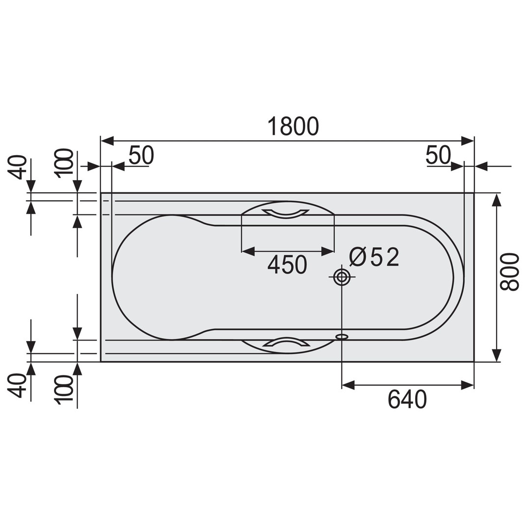 Duscholux Rechteck-Badewanne ANCONA Vario 242 180 x 80 cm, mit Ergokontur, weiß