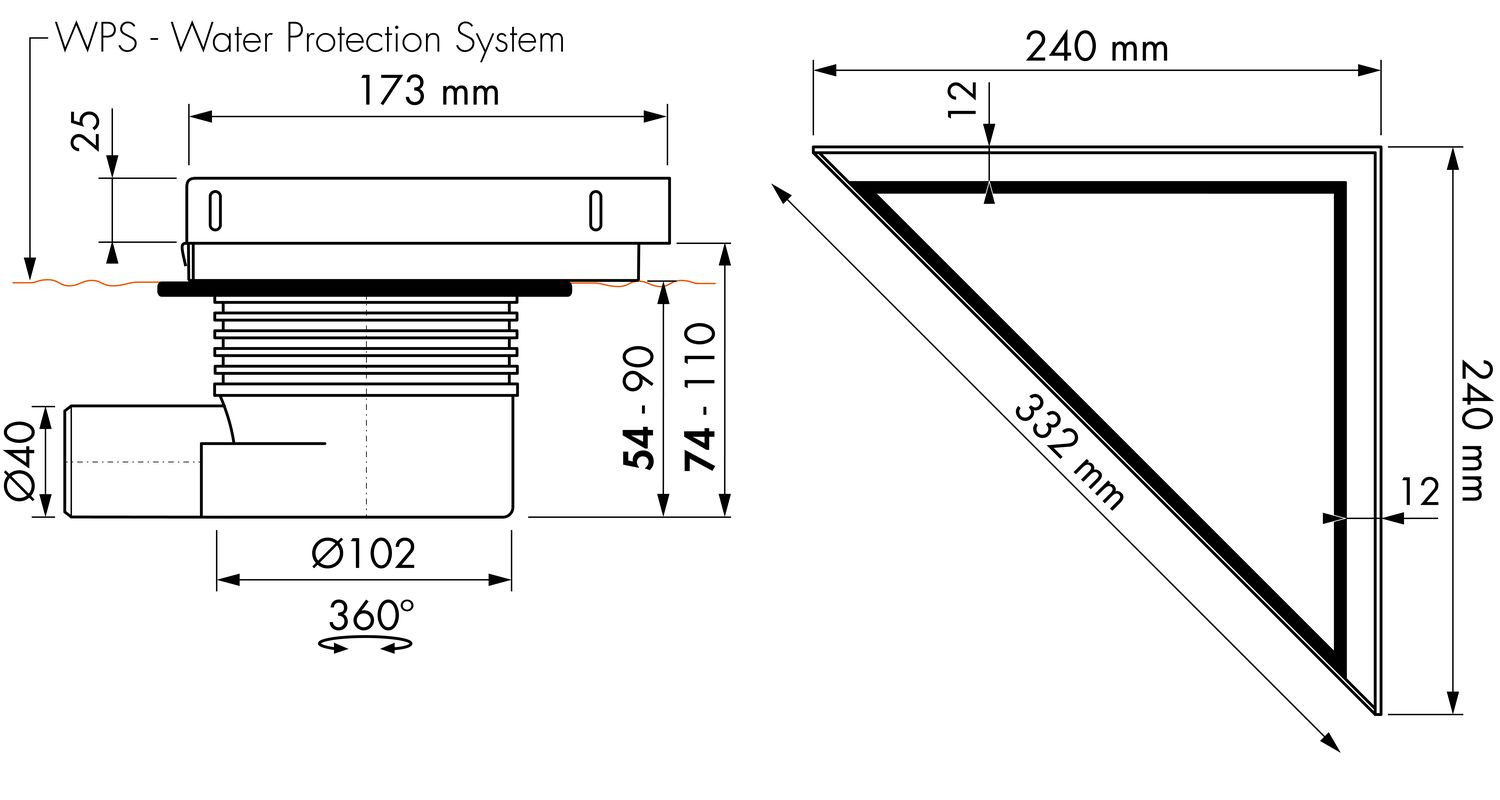 Duschrinne Aqua+ Delta, Zero MSI6 waagerecht, DN 40