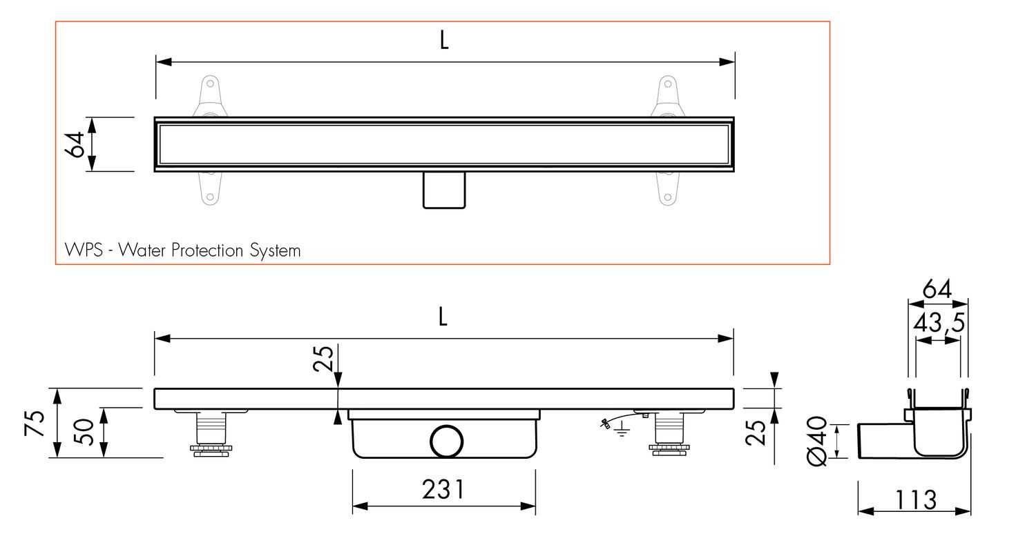 Duschrinne Compact Clean FF Fliese 80cm, Sperrwasserhöhe 30mm, Komplettset