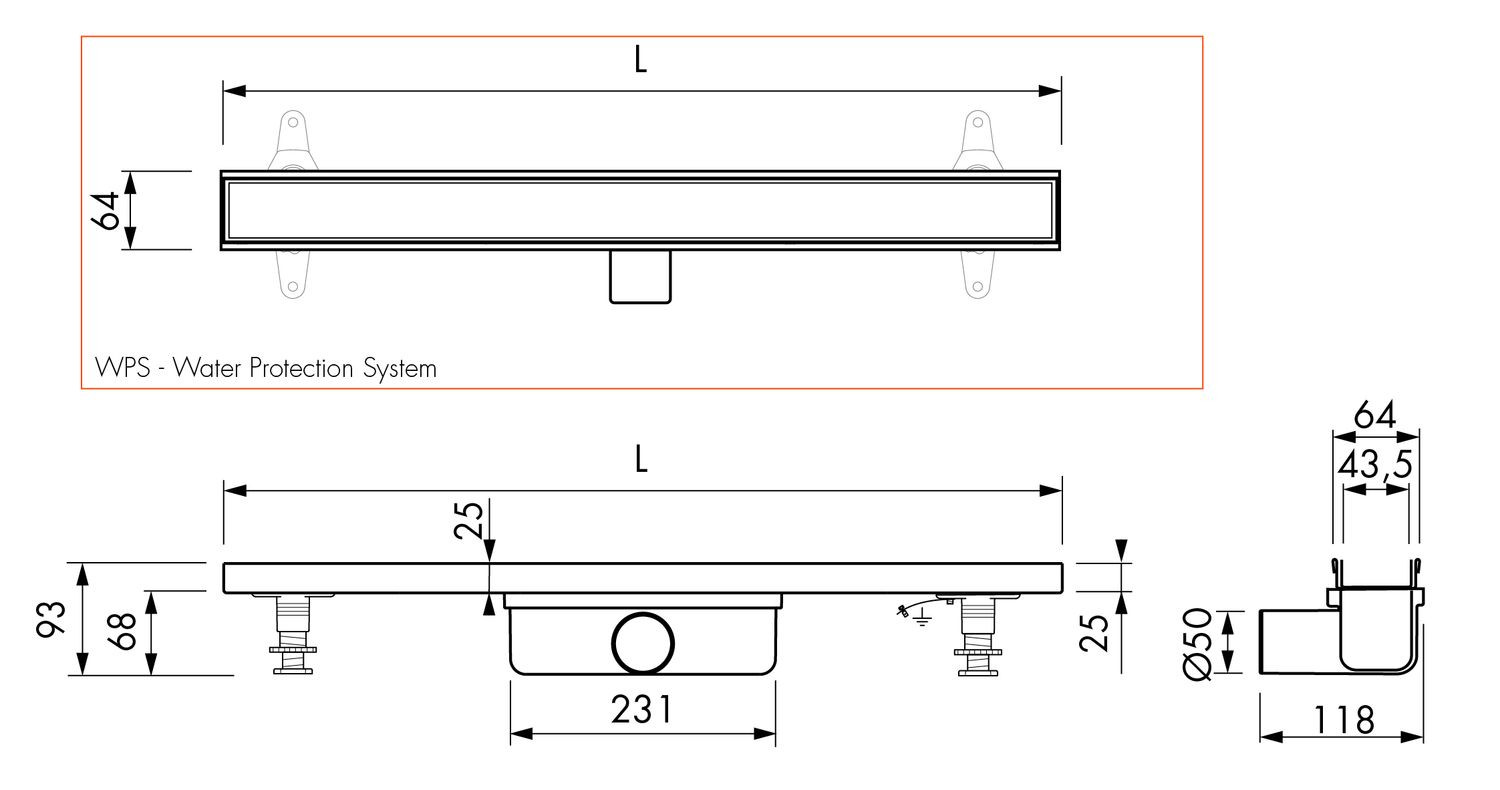 Duschrinne Compact Clean FF Zero 50cm, Sperrwasserhöhe 50mm, Komplettset