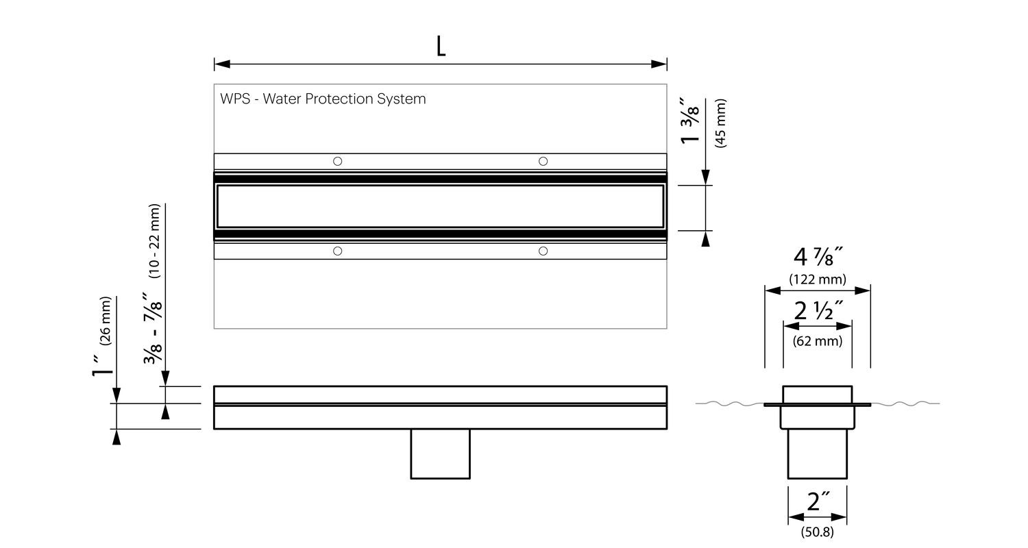 Duschrinne Pool-line Linear, 120cm Inkl. WPS, TAF & Abdeckung, mit Auslass