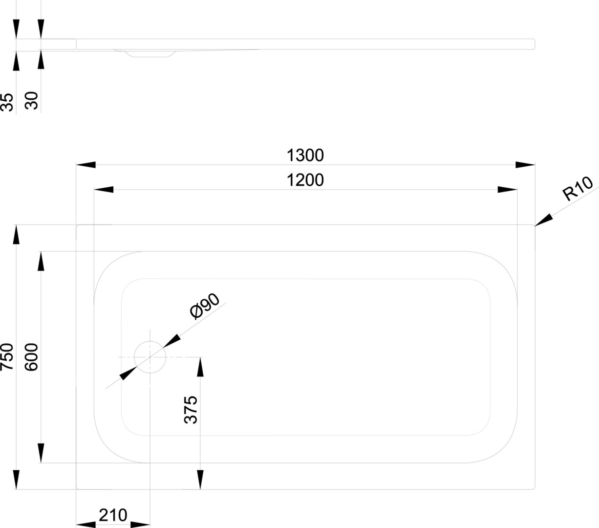 Durchmesser Ablaufloch 90 mm