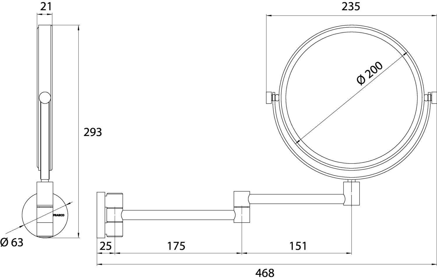 EMCO Rasier-/Kosmetikspiegel Pure d= 200mm, 2-armig, rund, Vergrößerung 3-fach, chrom