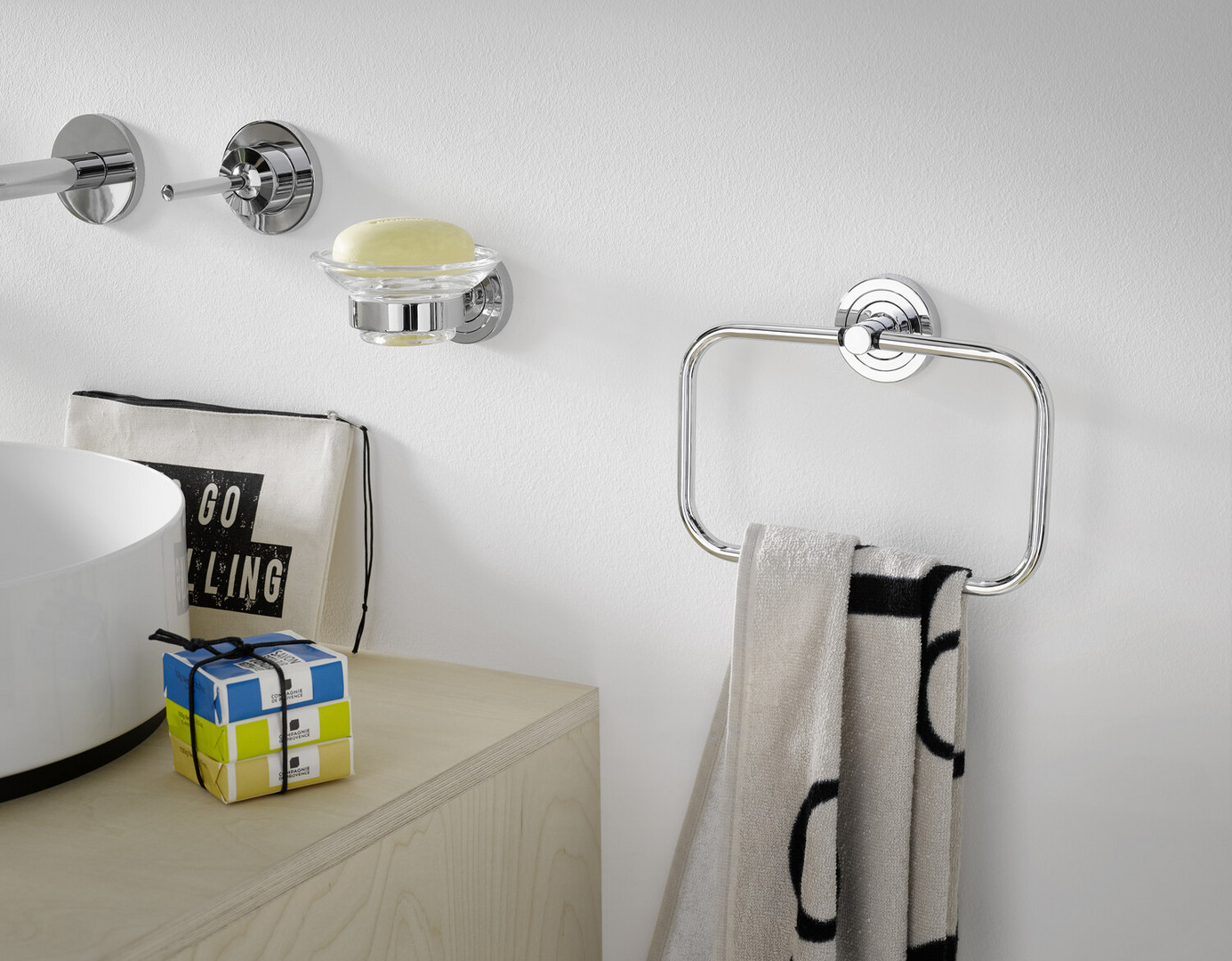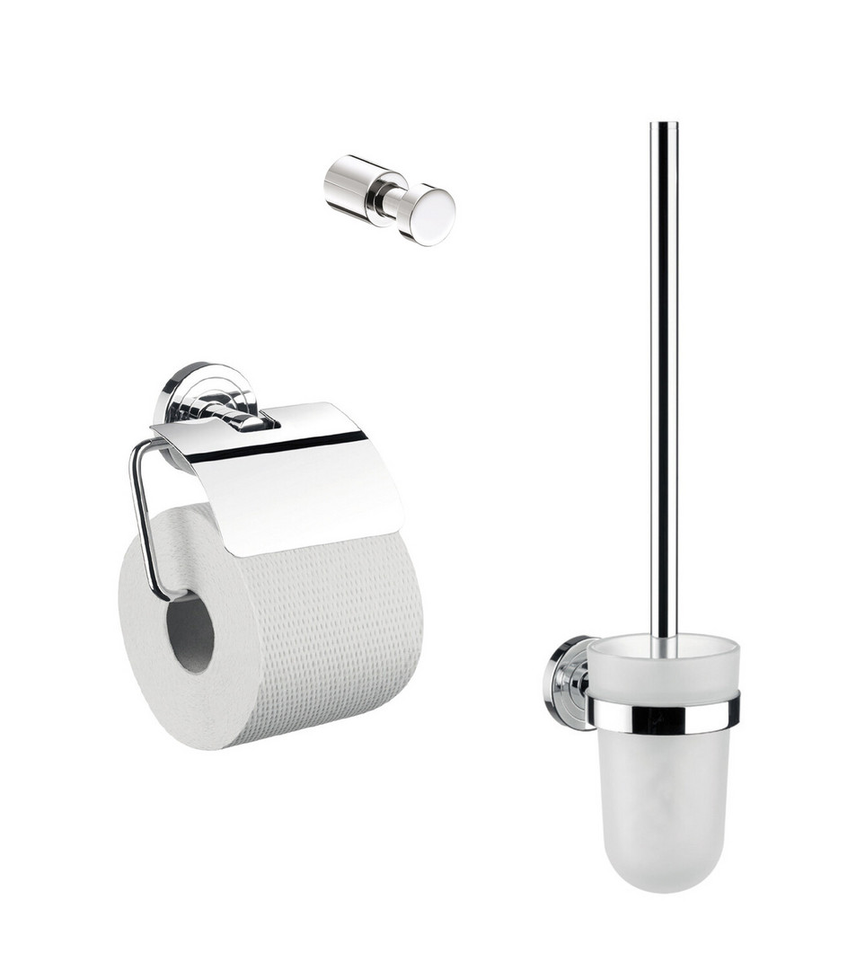 EMCO WC-Set Polo chrom, Papierhalter mit Deckel, Bürstengarnitur und Haken