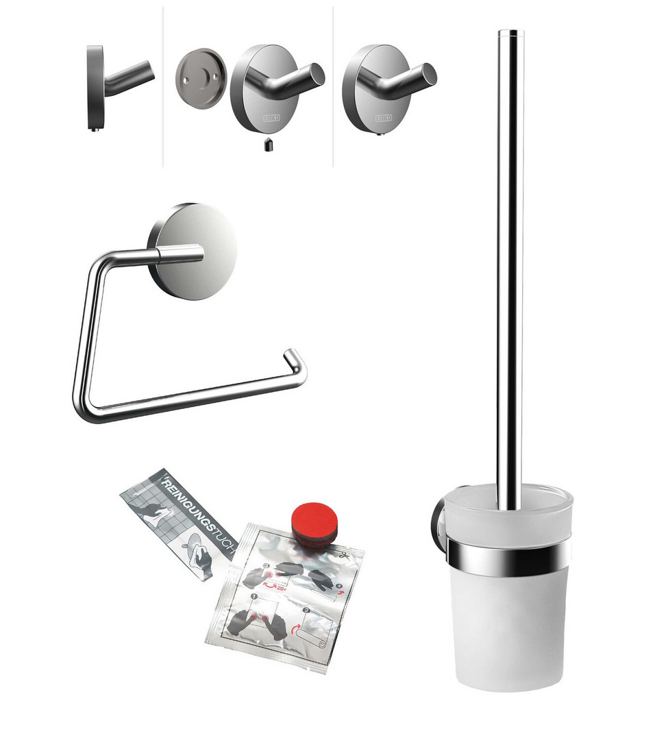 EMCO WC-Set chrom, Papierhalter, Bürstengarnitur, Haken und Klebe-Set EC439800100