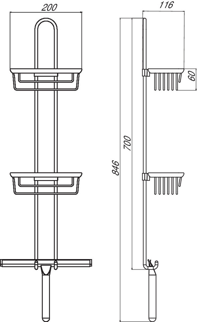 EMCO Wandetagere System 2 chrom, 2 tiefe Körbe, Duschwischer