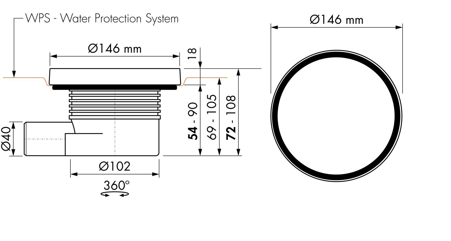 ESS Bodenablauf AQUA Round 15 Ø 15 cm, Sperrwasserhöhe 50 mm, Bauhöhe 54 mm, Edelstahl gebürstet