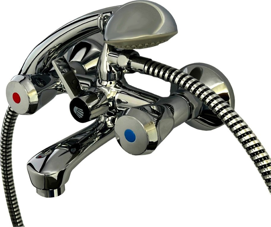 FORMAT Basic 2.0 Wannen-Zweigriffarmatur mit Brauseset, mit Gabelhaken, ABS-Griff, chrom