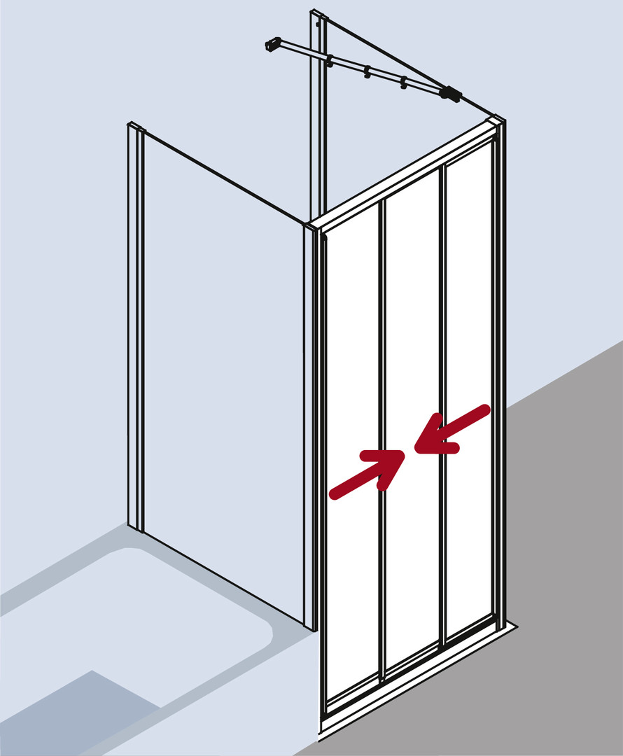 zum Einbau in einer Nische und zur Kombination mit I2 TWO Seitenwand/I2 TWO Seitenwand verkürzt, gerahmte Tür mit drei Gleittürsegmenten, nach rechts und links öffnend, Verglasung mit 3 mm Einscheiben-Sicherheitsglas nach DIN EN 12150, Profile und Griffleisten aus hochwertigem eloxiertem Aluminium, Verstellmöglichkeit im Wandprofil 12 mm, Verbreiterung im Rahmen 16 mm, zuverlässiger Haltefeder-Türverschluss und durchgehende Dichtprofile, mit Bodenprofil (Höhe 47 mm), mit Befestigungsmaterial, Made in Germany, geprüft nach DIN EN 14428 (CE) und PPP 53005 (TÜV/GS), 20 Jahre Ersatzteil-Nachkaufsicherheit nach Auslauf des Modells, Qualitätssicherungssystem zertifiziert nach DIN EN ISO 9001:2015, Umweltmanagement zertifiziert nach DIN EN 14001:2015, Energiemanagement zertifiziert nach DIN EN 50001:2011