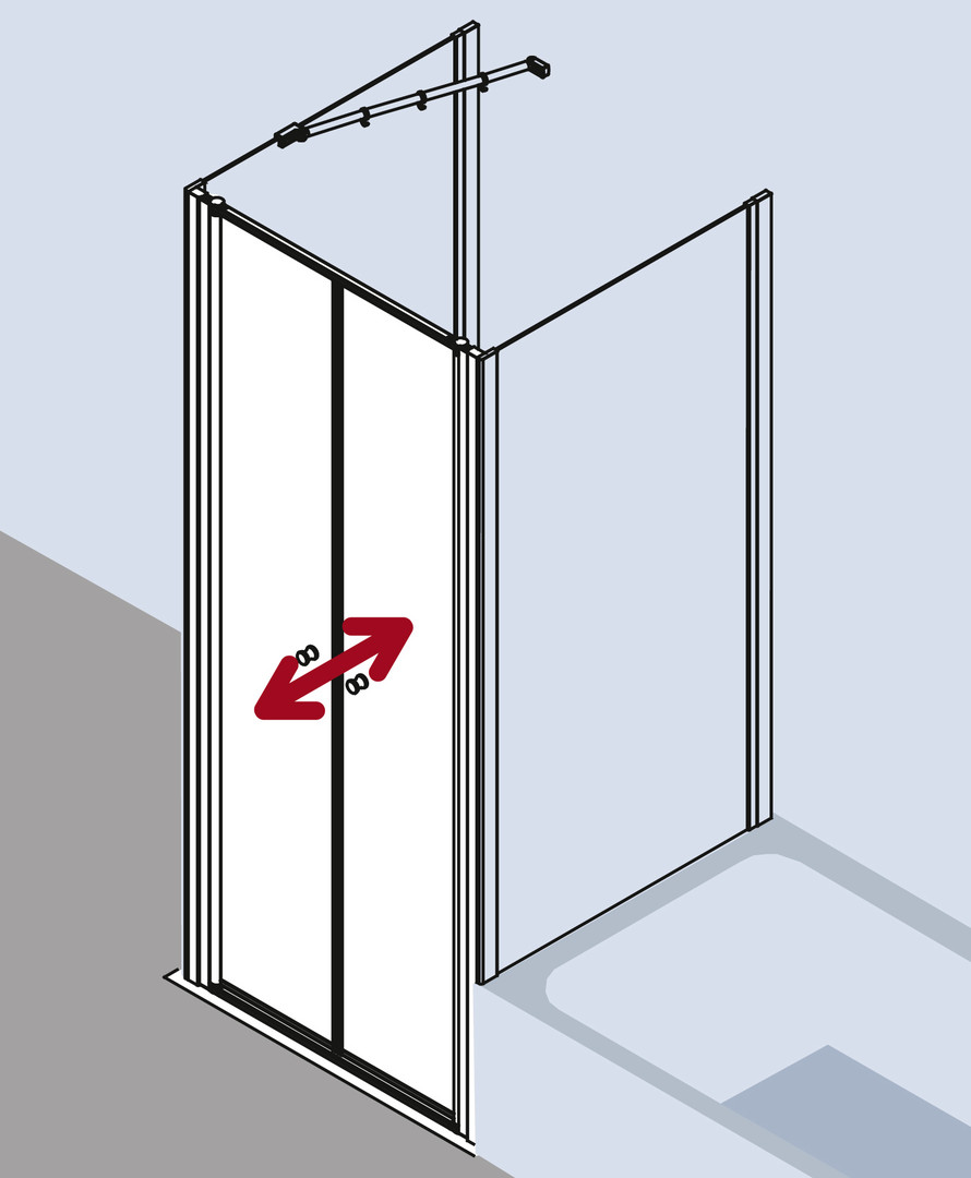 zum Einbau in einer Nische und zur Kombination mit allen FORUM Seitenwänden, teilgerahmte Tür mit zwei Glasflügeln, nach innen und außen öffnend, mit Zugstab, Verglasung mit 4 mm Einscheiben-Sicherheitsglas nach DIN EN 12150, Profile aus hochwertigem eloxiertem Aluminium, Griffe aus hochwertigem Kunststoff, Verstellmöglichkeit je Wandprofil 17,5 mm, Türprofile mit Hebe-Senk-Mechanismus, Durchgehende Magnetleisten und Dichtprofile, mit Bodenschwelle (Höhe 16 mm), Installation immer mit Bodenschwelle, mit Befestigungsmaterial, Made in Germany, geprüft nach DIN EN 14428 (CE) und PPP 53005 (TÜV/GS), 20 Jahre Ersatzteil-Nachkaufsicherheit nach Auslauf des Modells, Qualitätssicherungssystem zertifiziert nach DIN EN ISO 9001:2015, Umweltmanagement zertifiziert nach DIN EN 14001:2015, Energiemanagement zertifiziert nach DIN EN 50001:2011