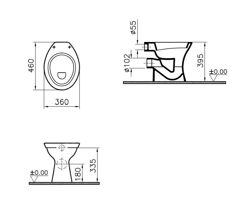 FORMAT Basic Stand-Flachspül-WC 36 x 46 cm, Abgang waagerecht, weiß