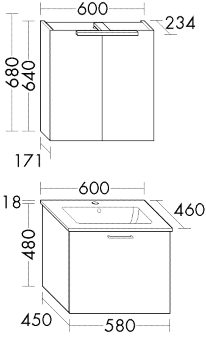 FORMAT Basic Waschtisch-Kombination 600mm, mit Spiegelschrank, 1 Auszug, weiß matt/alpinweiß