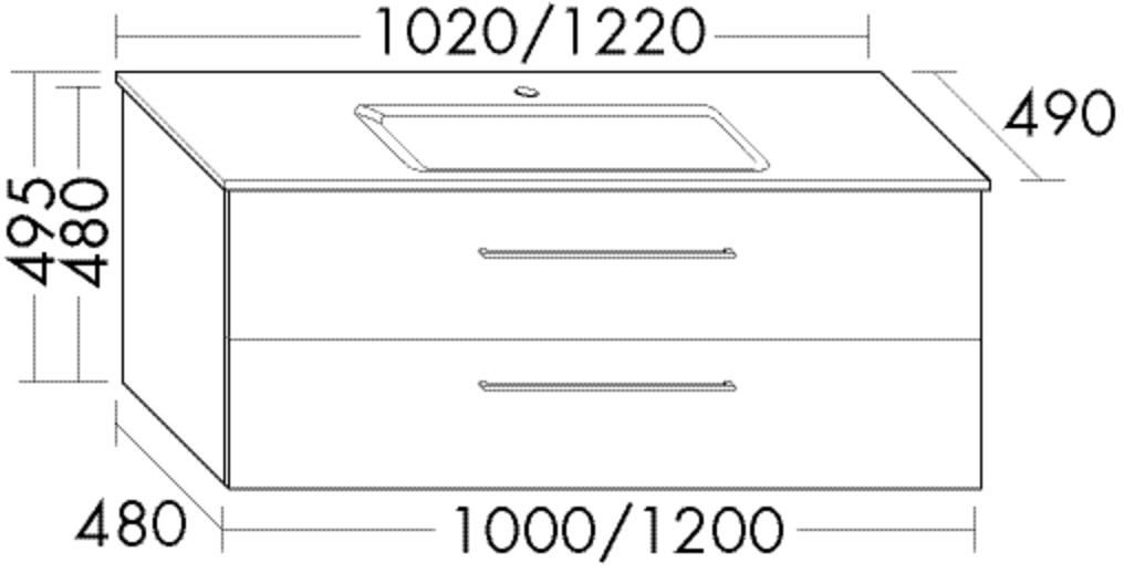 FORMAT Design Glaswaschtisch mit Unterschrank SEOI Breite: 1020 mm, Basaltgrau Matt, 2 Auszüge FOSEOI102F2112