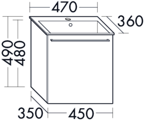 FORMAT Design Mineralguss-Waschtisch-Set SFOU047 490x360x470mm, Unterschrank 1 Auszug, weiß Hochglanz FOSFOU047F0508