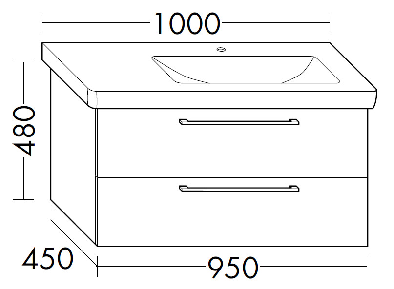FORMAT Design Waschtisch-Unterschrank WUUU095 R 950x480x450mm, 1 Schublade/1 Auszug, weiß Hochglanz FOWUUU095F0508R