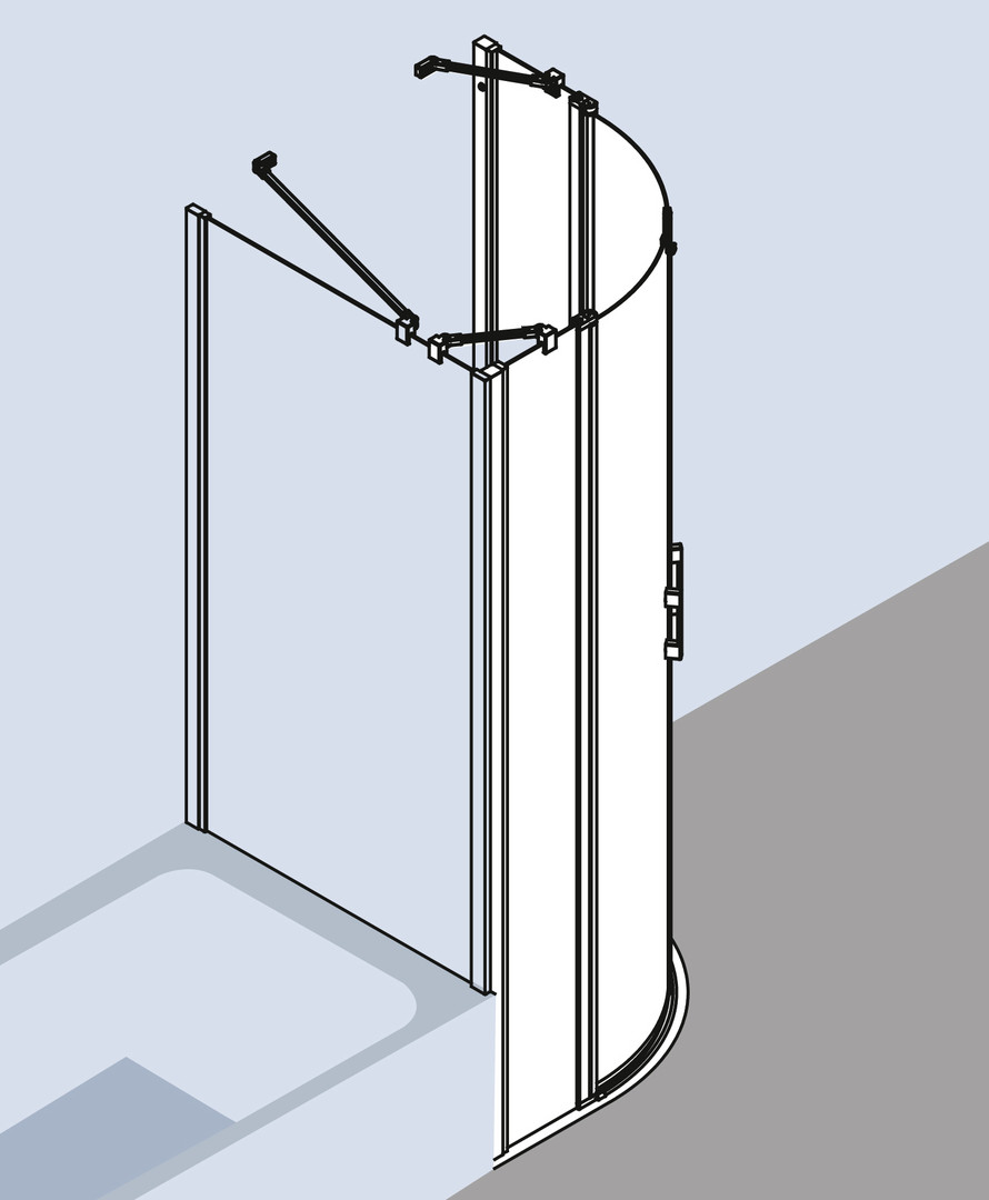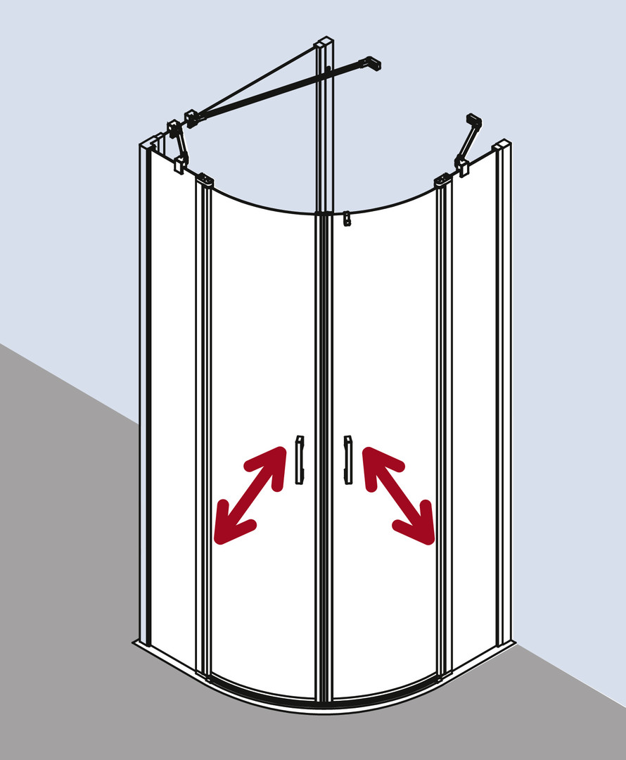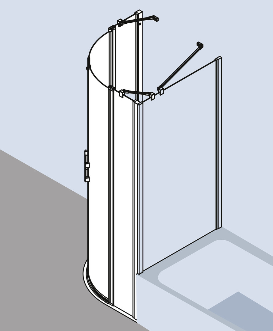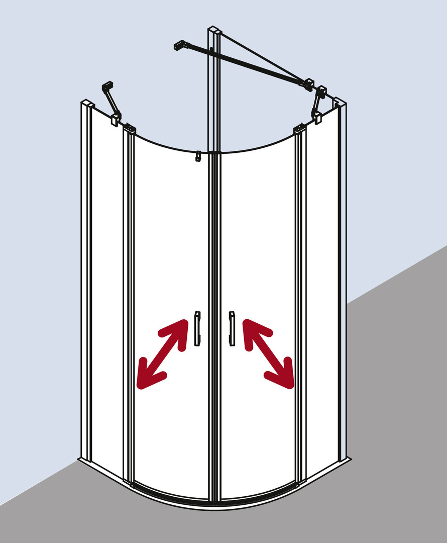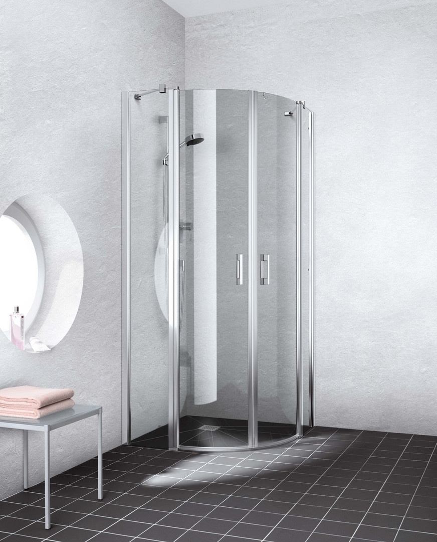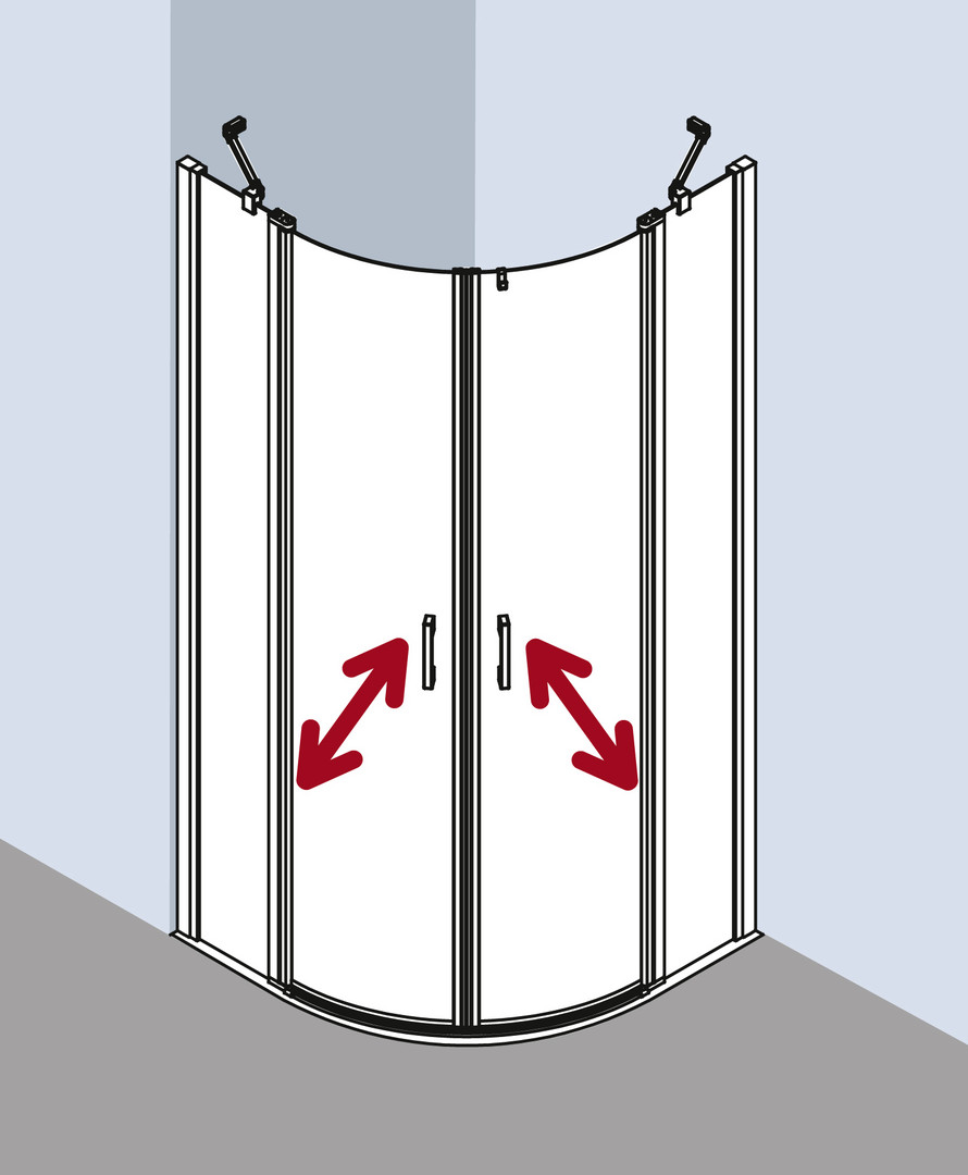 FORMAT Pro 2.0 VK-Pendeltür mit Festfeldern silber matt, Radius 55 cm, 90 x 200 cm, ESG klar Clean