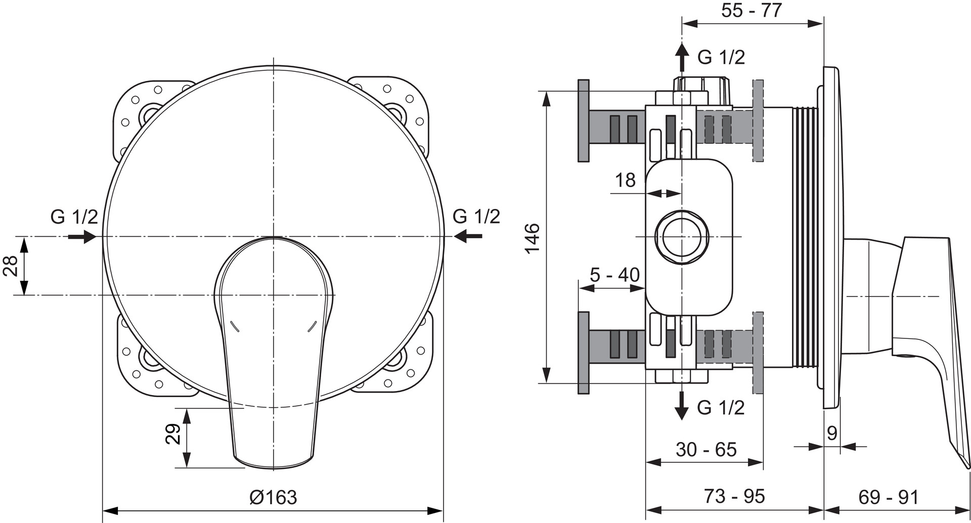 Bausatz 2 für Fertigmontage, alle sichtbaren Designteile, Rosettengröße Ø 163 mm, Bedienungshebel aus Metall, Kartusche Ø 47mm mit keramischen Dichtscheiben, Kartuschenübersetzung aus Edelstahl, Schwenkbereich 120°,mit integriertem Fettreservoir (lebensmittelverträglich),mit integrierter Heißwassertemperaturbegrenzung DICHT-FIX System (separate Abdichtung jeder Öffnung für optimalen Schutz des Bauwerks gegen Feuchtigkeit und Wasser), Lebensdauertest EN 817, Geräuschverhalten DIN 4109, Gruppe 1, Montage nur in Verbindung mit: Unterputz-Bausatz 1, Vectron-Box
