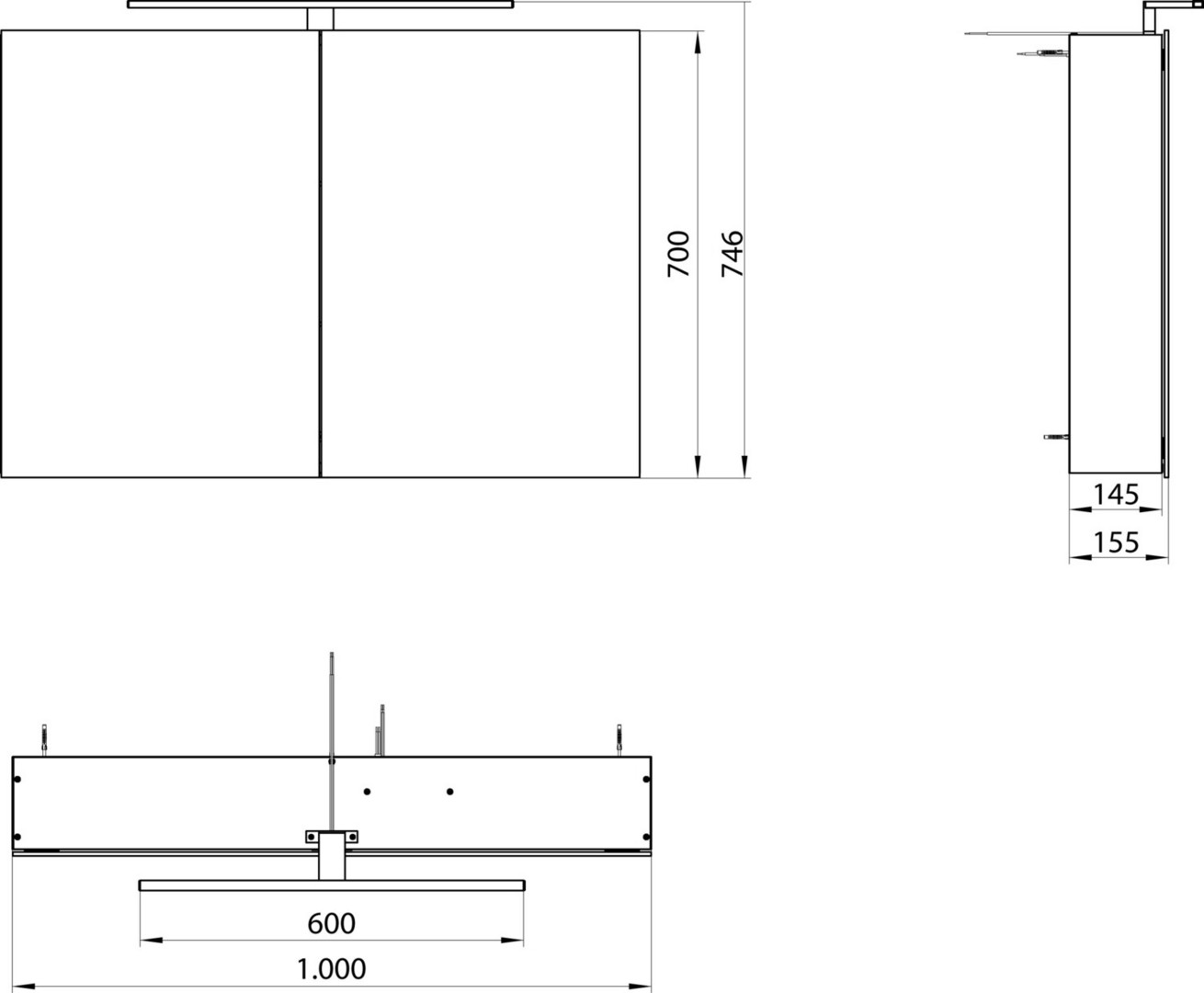 FORMAT Pro Lichtspiegelschrank 1000 x 700/746 x 145 mm, Aluminium, 2-türig, Aufputz