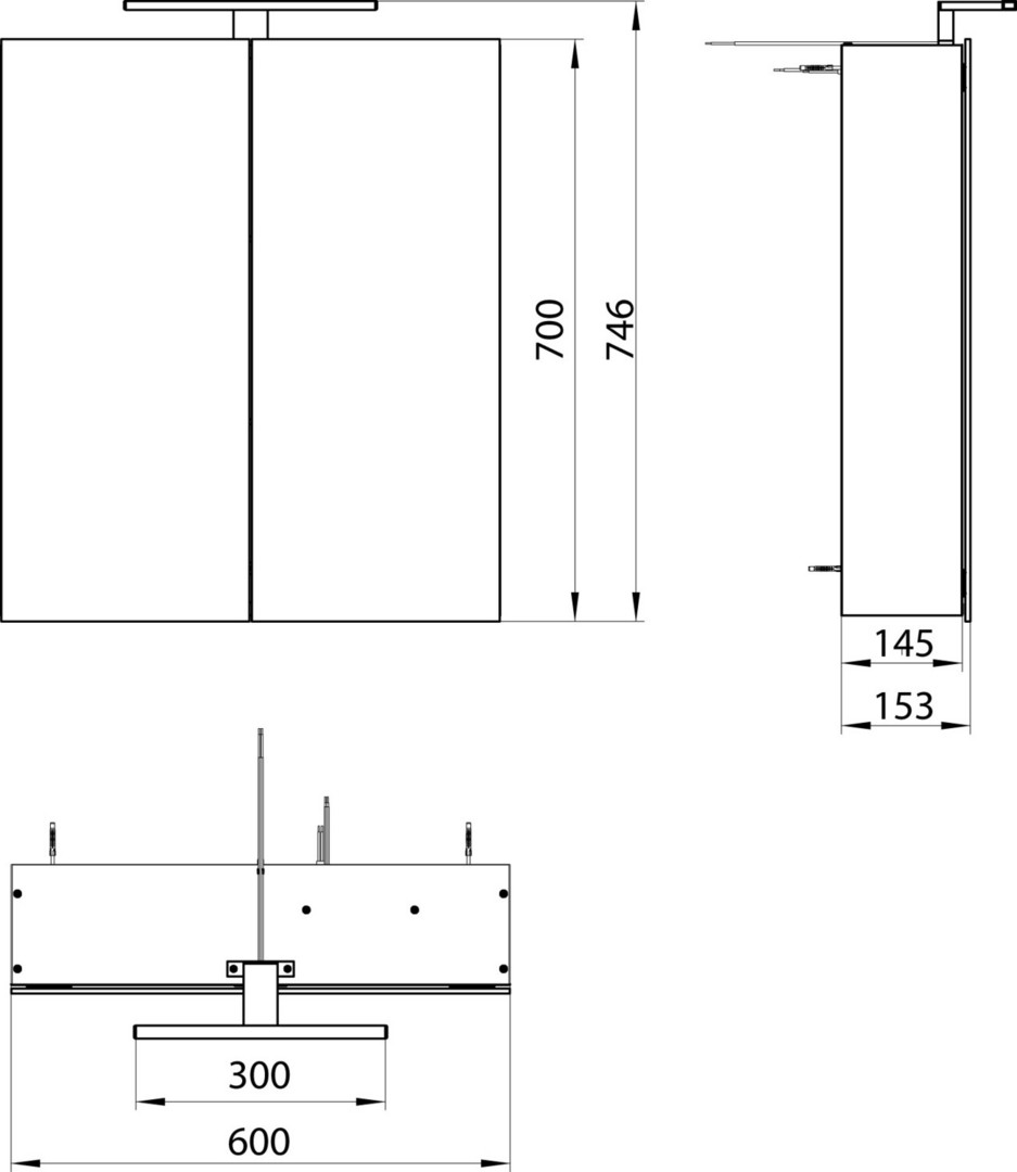 FORMAT Pro Lichtspiegelschrank 600 x 700/746 x 145 mm, Aluminium, 2-türig, Aufputz FO18010020001