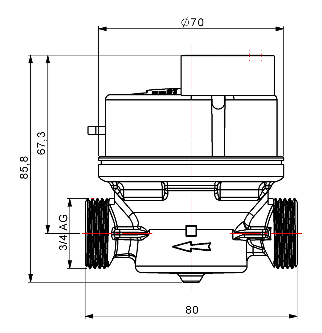 FORMAT Tec AP-Wasserzähler smart M OMS G 3/4 x 80 mm, Q3-2,5, T90, Messing blank, mit integriertem Funk