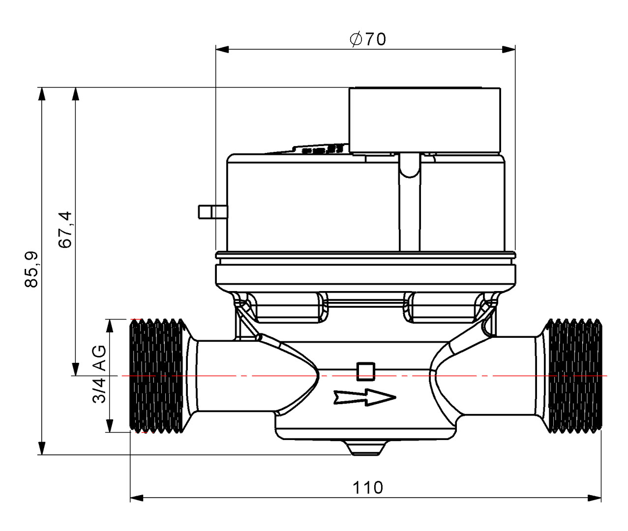 FORMAT Tec AP-Wasserzähler smart M OMS Zapfhahn, Q3-2,5, T90, kaltwarm, mit integriertem Funk FO20100040002