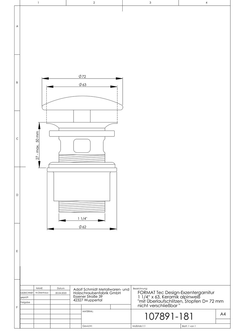 | Nenndurchmesser Auslass | 1 1/4 Zoll |