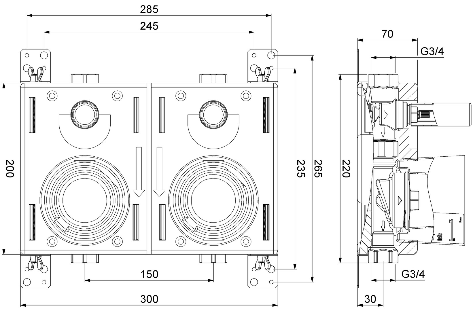 FORMAT Tec Miniblock Duo Koax DN 20 (3/4") IG, Messing mit Spindel-V/OBB-2 FH20100080001