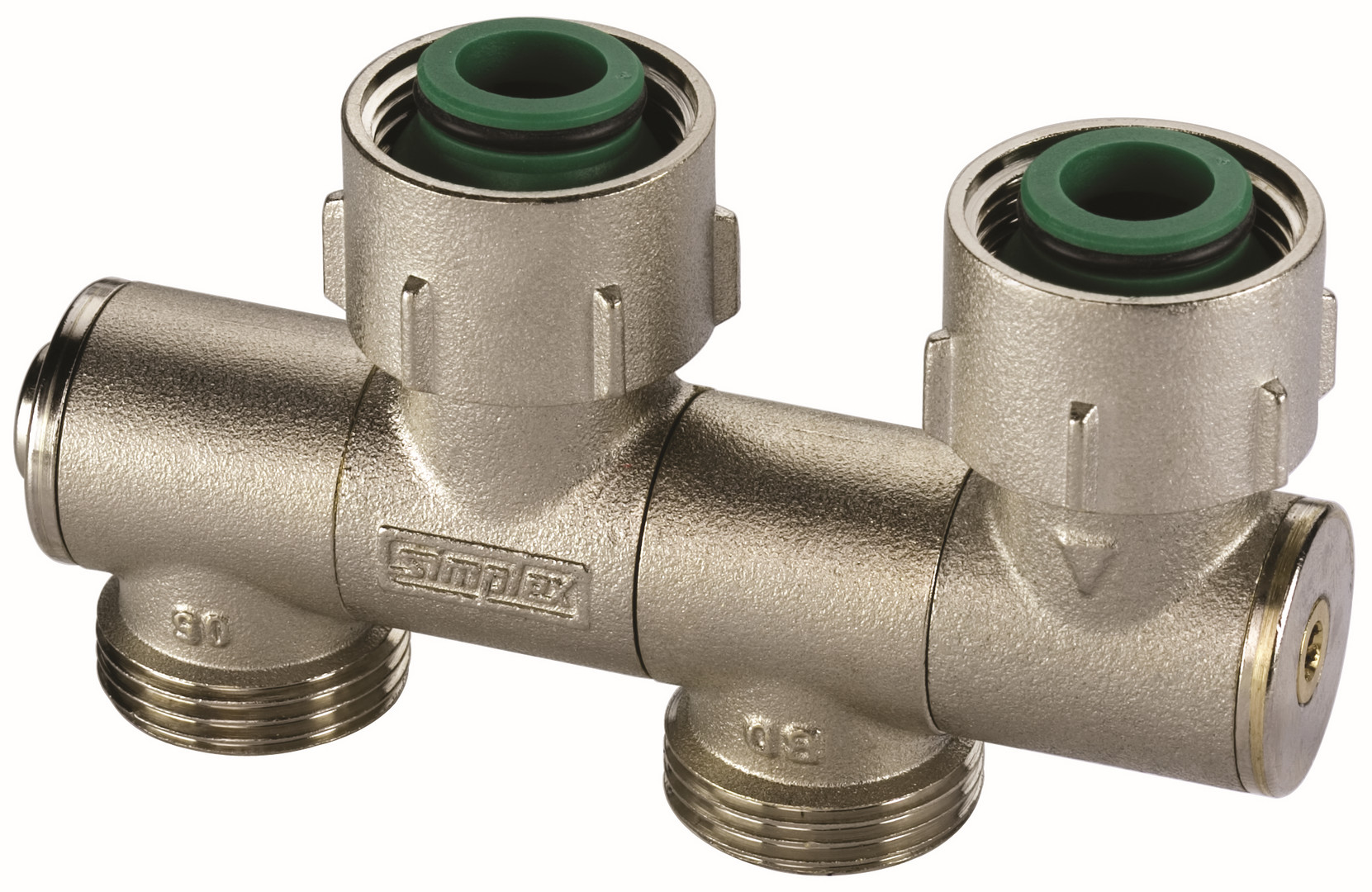 Flamco Hahnblock VARIOCON N 2 G 3/4 M Eurokonus x G 3/4 F, schwenkbar, mit Konusteilen, Messing vernickelt