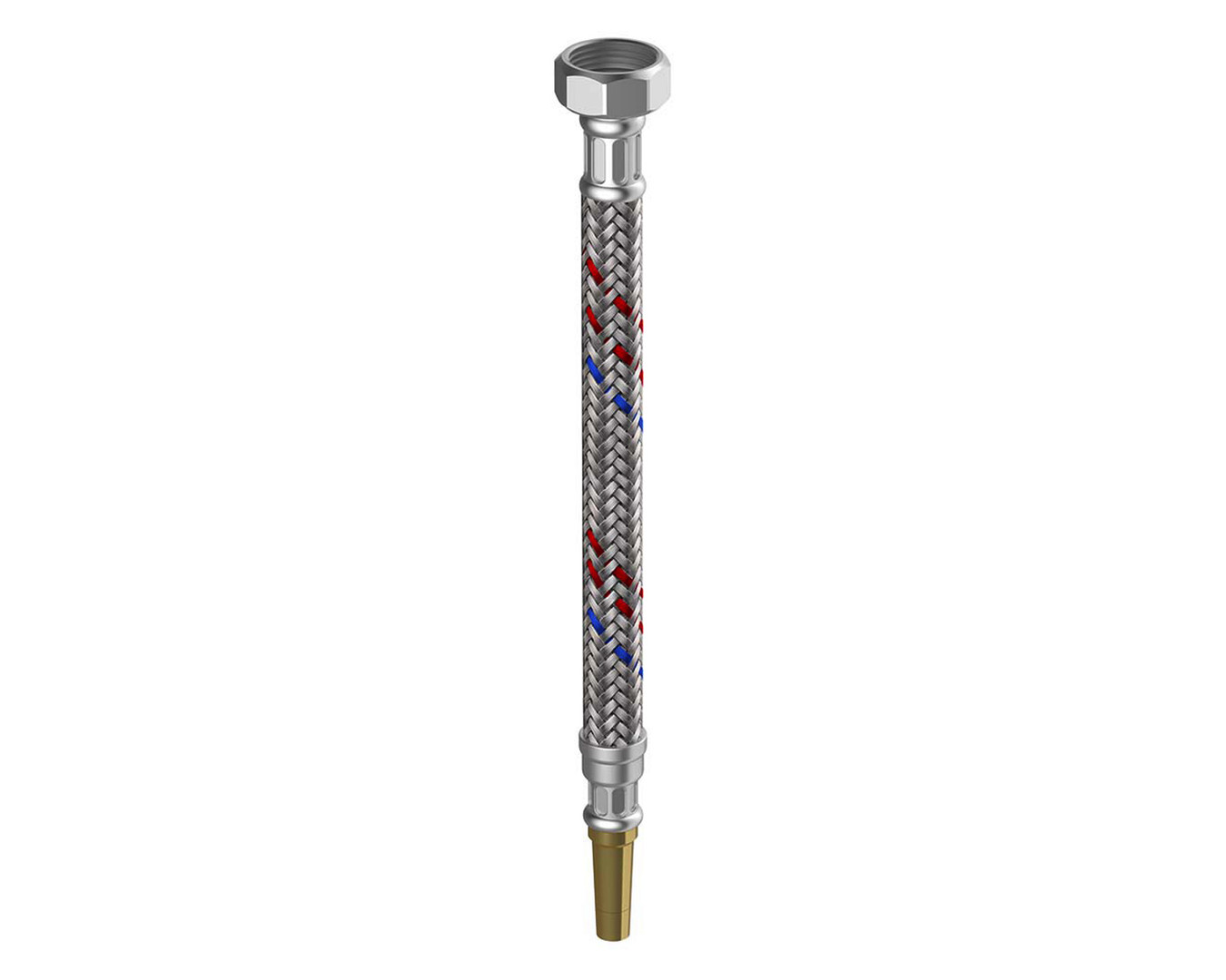 Armaturenschläuche für den Trinkwasserbereich DVGW, Gruppe I (W 543, W 270, KTW-A), Edelstahlgeflecht mit rot/rot/blauer Kennzeichnung, Temperatur bis 90 °C, Betriebsdruck bis 10 bar