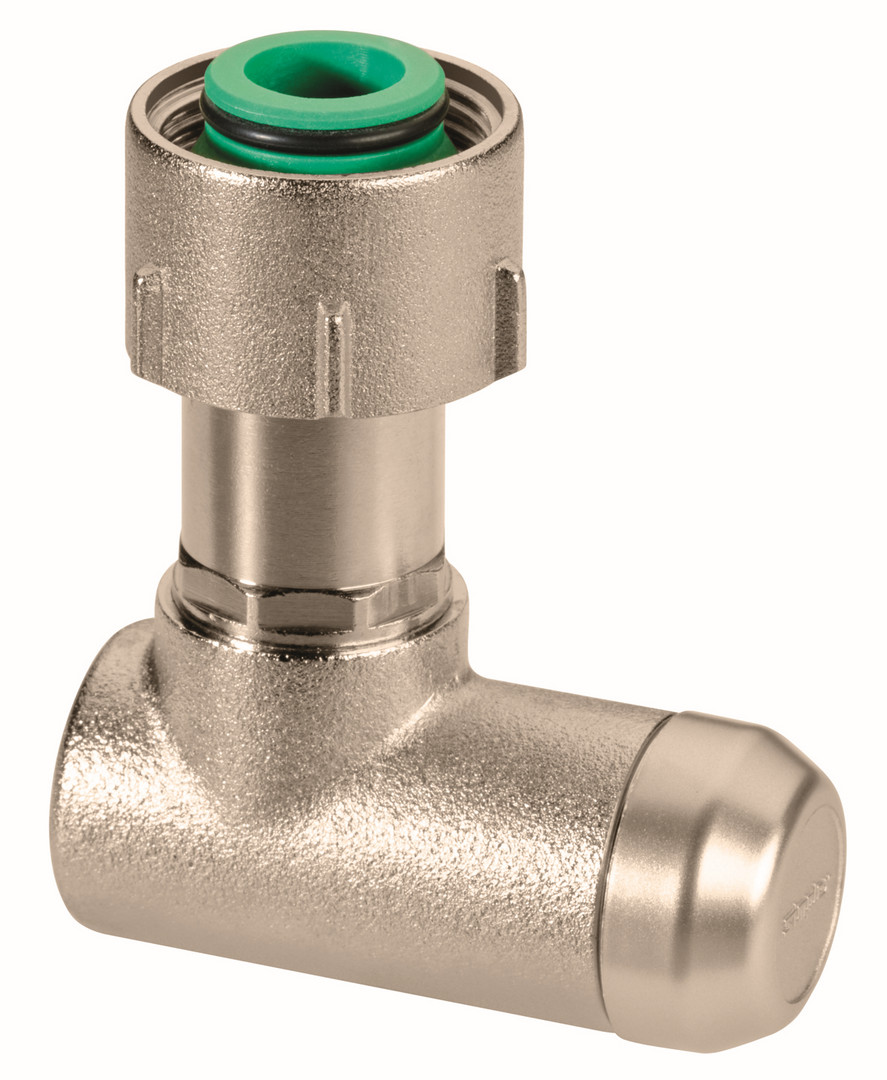 regulierbare Absperrverschraubung, passend für Simplex Sockelleisten-Anschlüsse 12 mm, Höhenregulierung (25 mm), Tiefenregulierung (13 mm), integrierte Klemmverschraubung 12 x 1 mm, mit Konusteilen für Ventil-Kompaktheizkörper mit G 3/4 M (Eurokonus) Anschluss, Dichtmaterialien aus EPDM, max. Betriebstemperatur: 110 °C Dauertemperatur/130 °C kurzzeitig, max. Betriebsdruck 10 bar